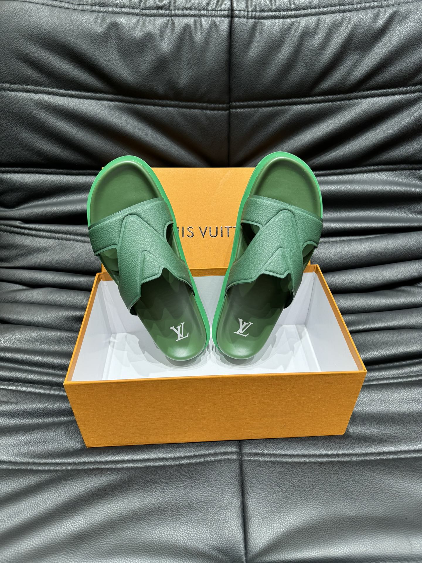 LV OASIS MULE IN SEA GREEN CALFSKIN