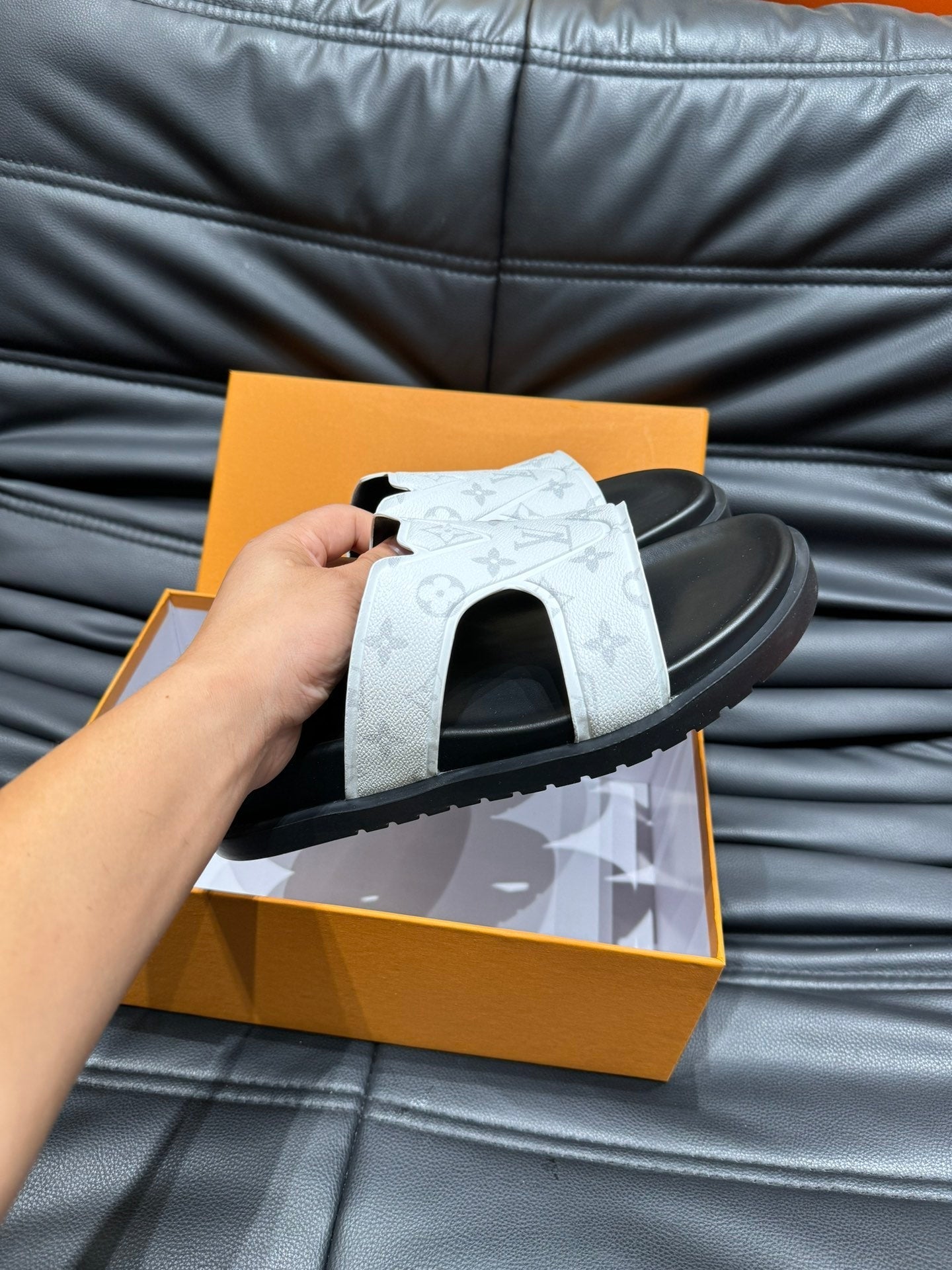 LV OASIS MULE IN WHITE MONOGRAM CALFSKIN