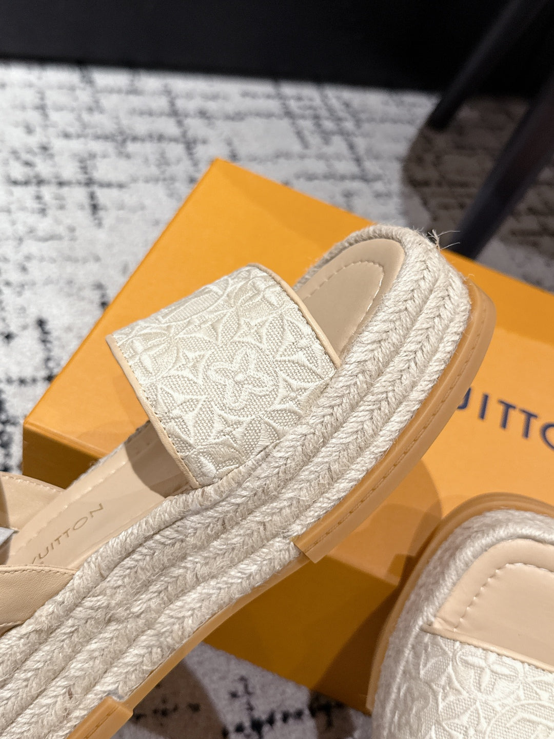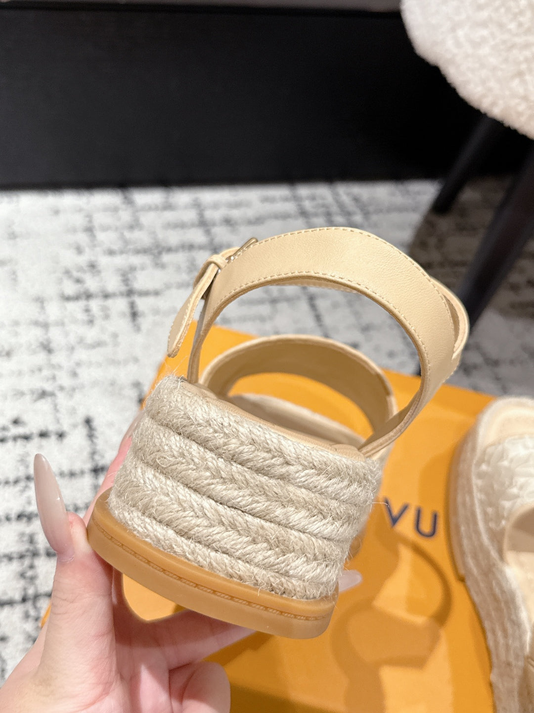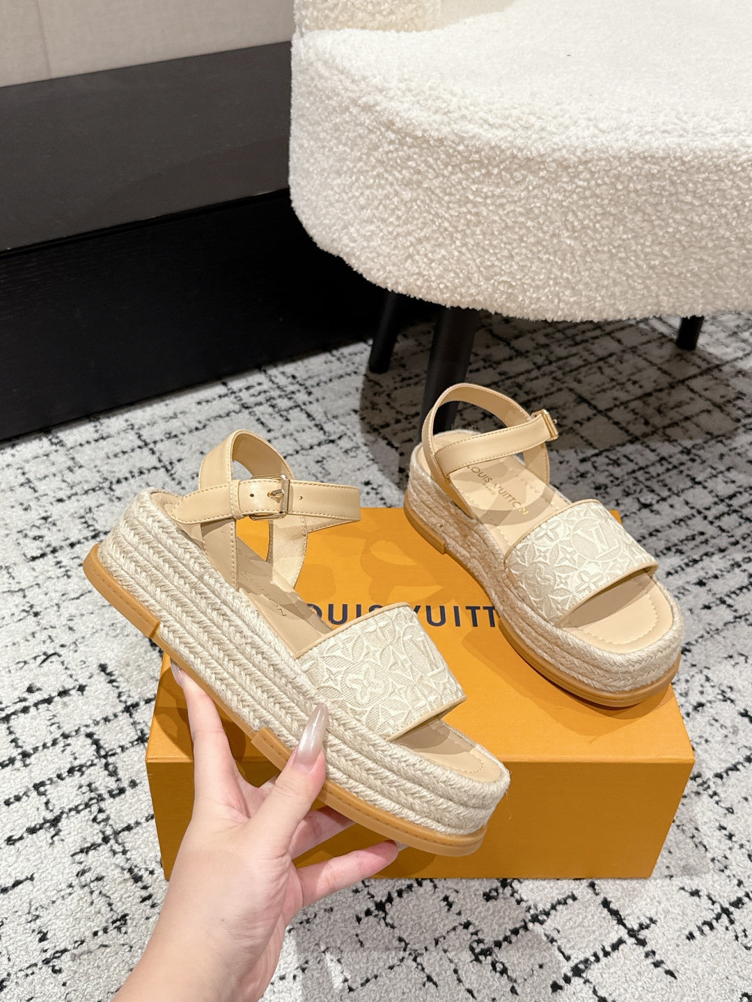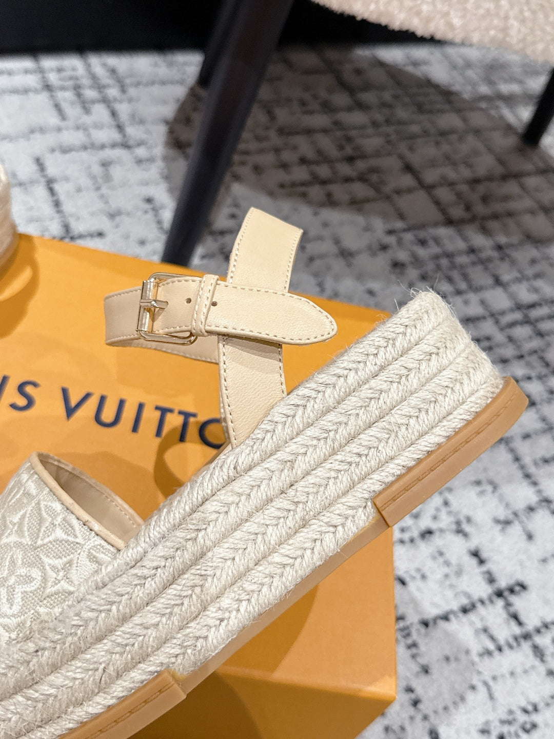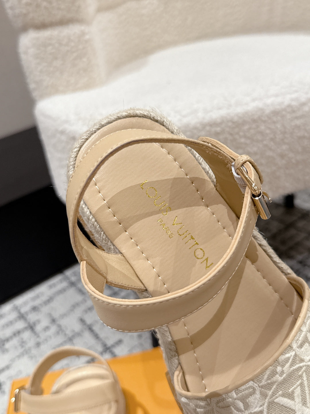 LV PLATFORM ESPADRILLE SANDALS 25S IN BEIGE FABRIC