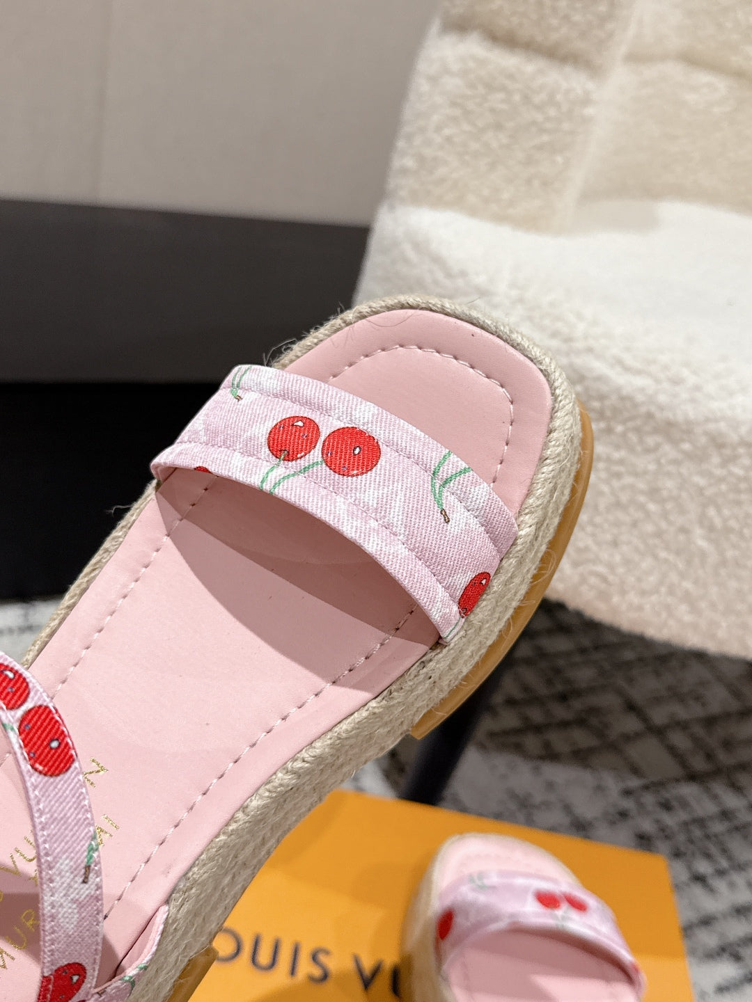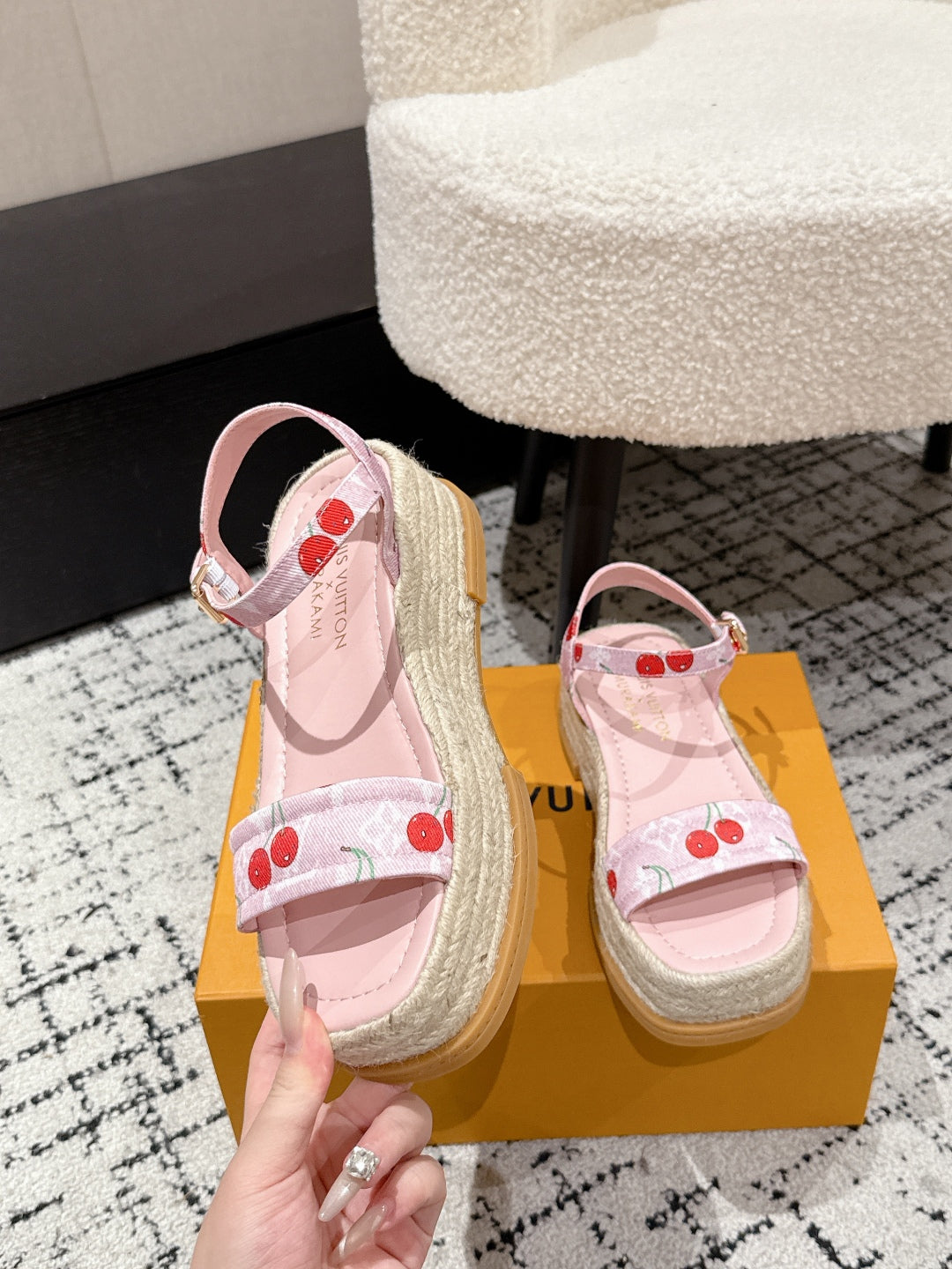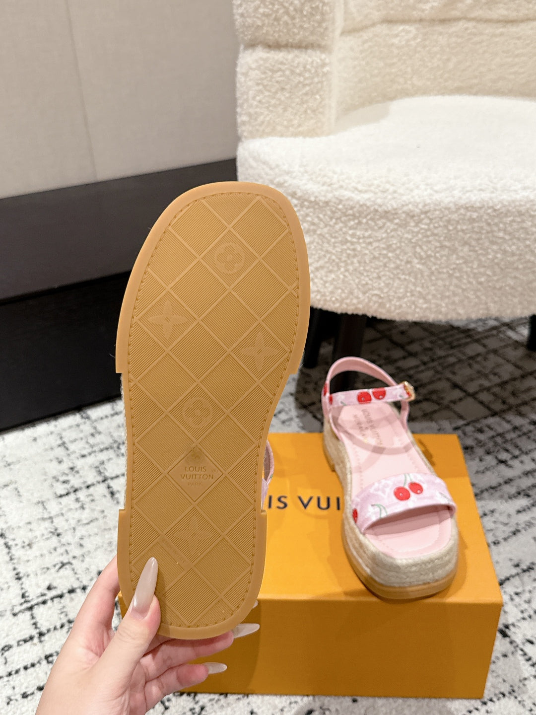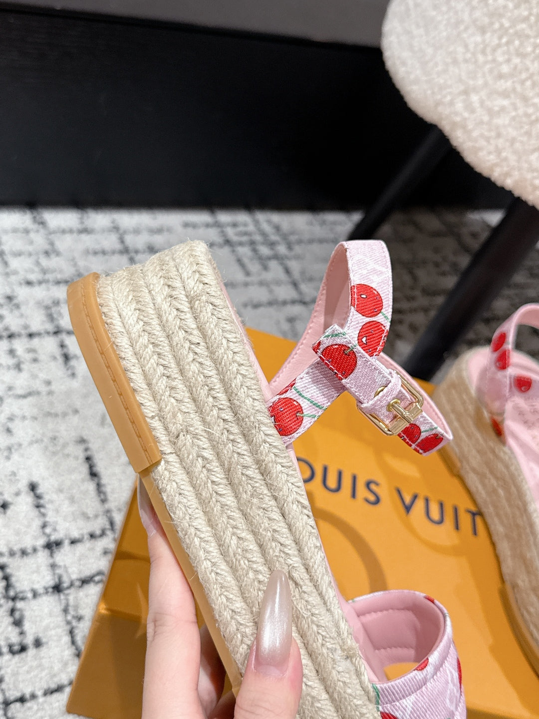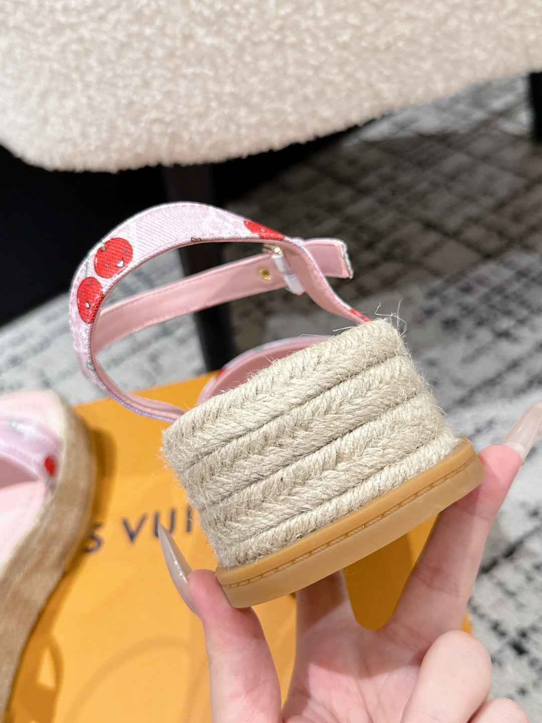 LV PLATFORM ESPADRILLE SANDALS 25S IN LIGHT PINK DENIM