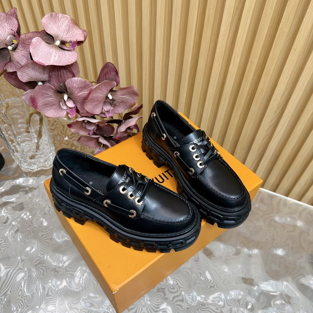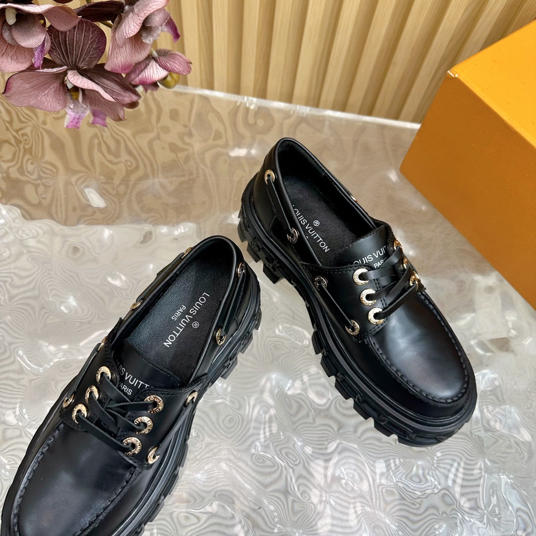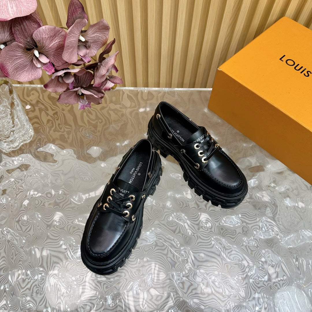 LV RECORD BOAT SHOE IN BLACK GLOSSY CALFSKIN