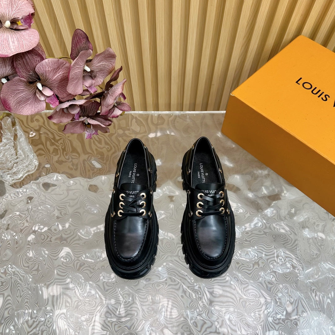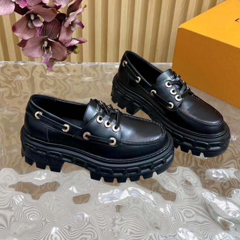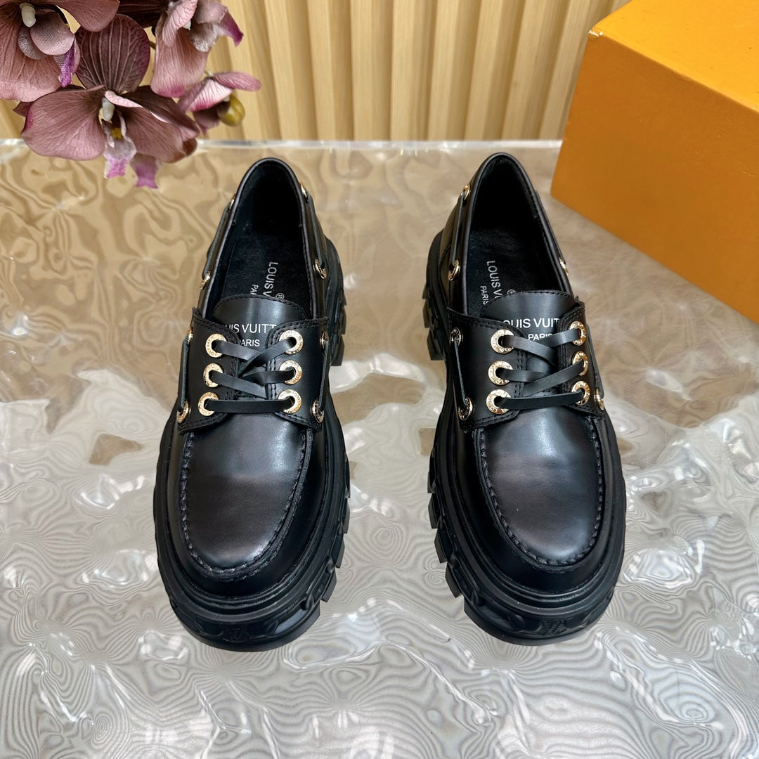 LV RECORD BOAT SHOE IN BLACK GLOSSY CALFSKIN