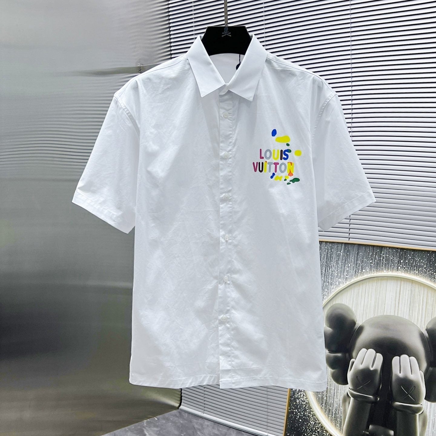 LV SHORT-SLEEVED SHIRT IN WHITE COTTON COLORFUL LOGO 238812