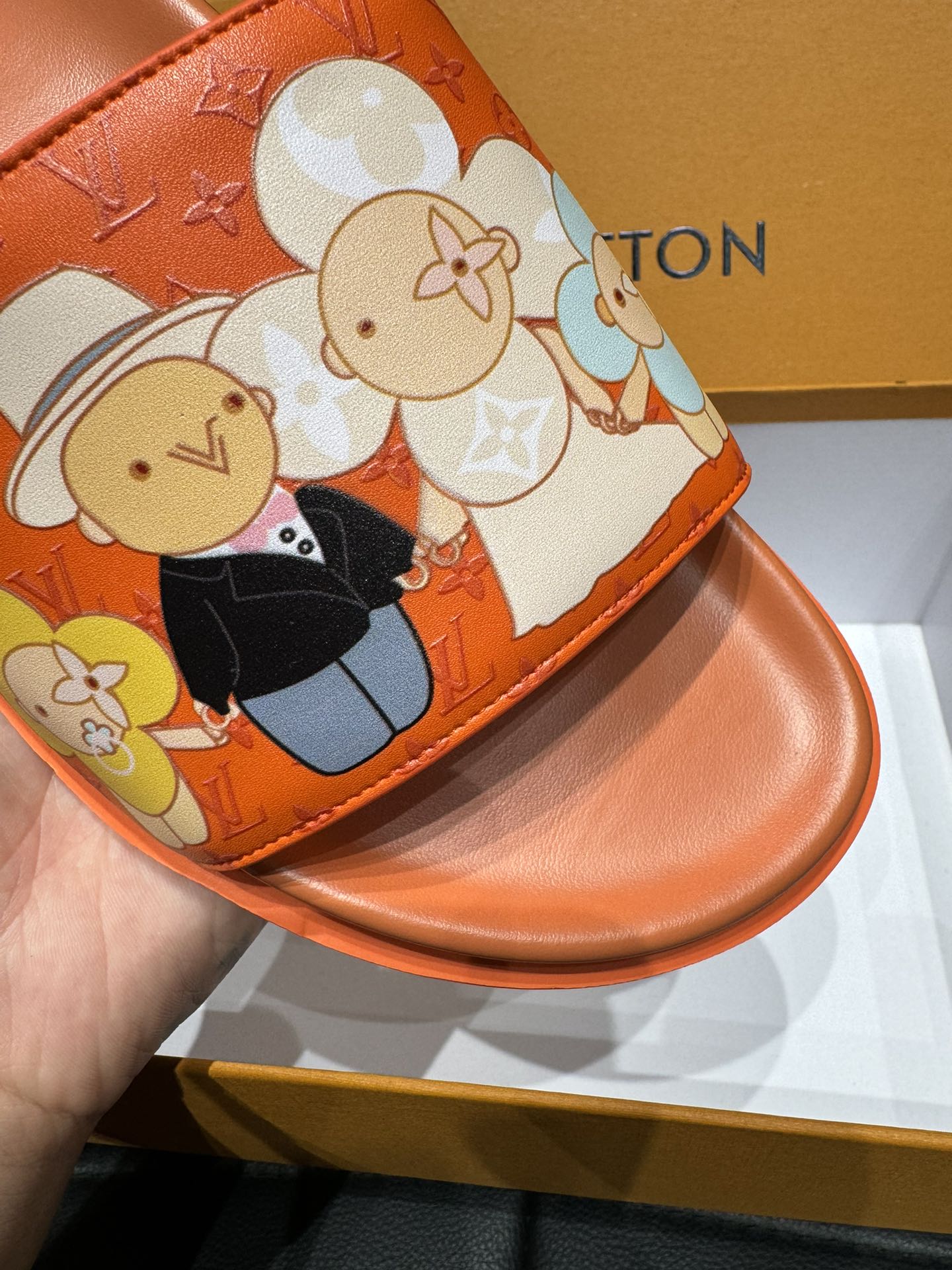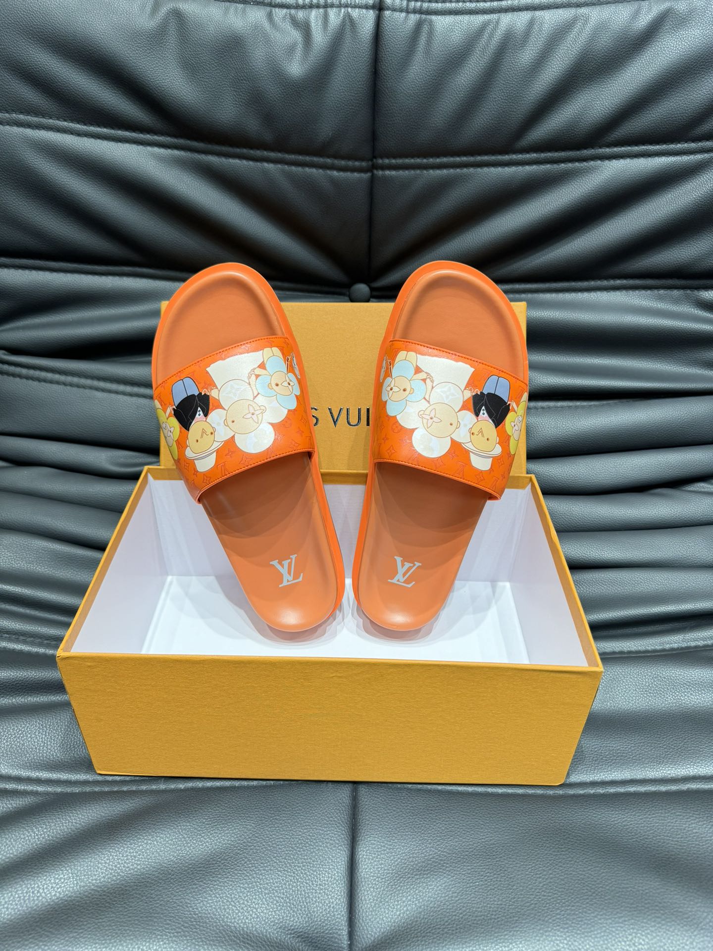 LV SLIPPERS IN CARROT ORANGE MONOGRAM CALFSKIN