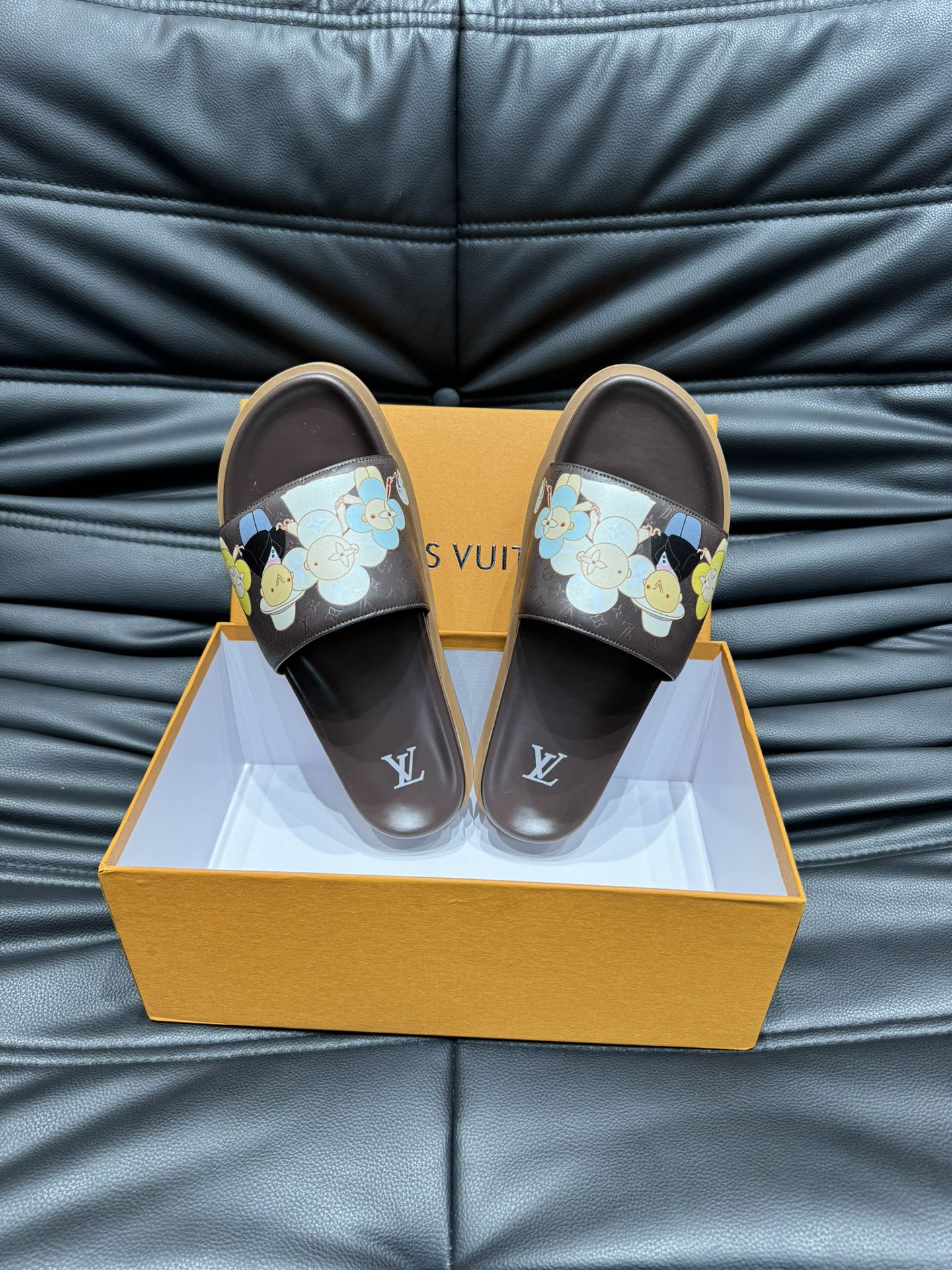 LV SLIPPERS IN CHOCOLATE BROWN MONOGRAM CALFSKIN