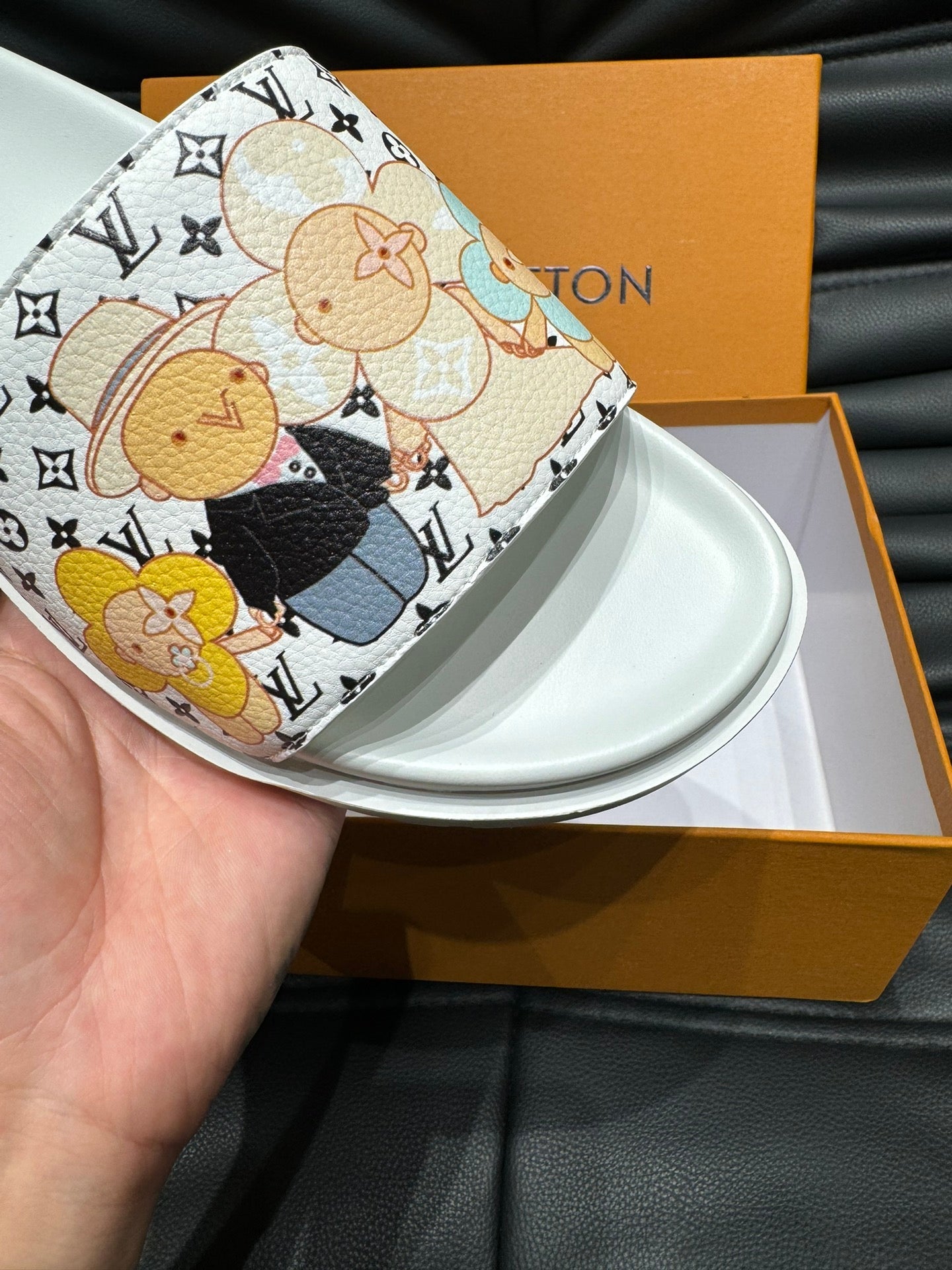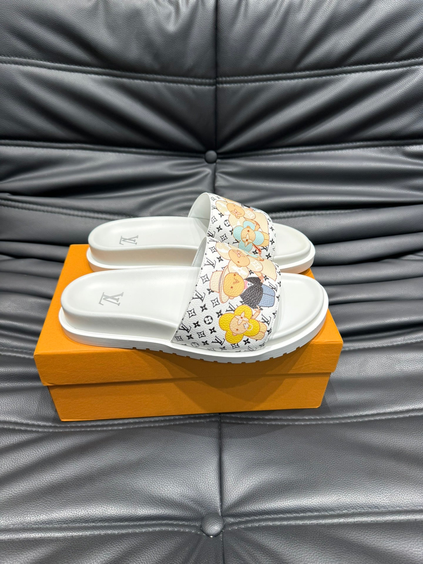 LV SLIPPERS IN WHITE MONOGRAM CALFSKIN
