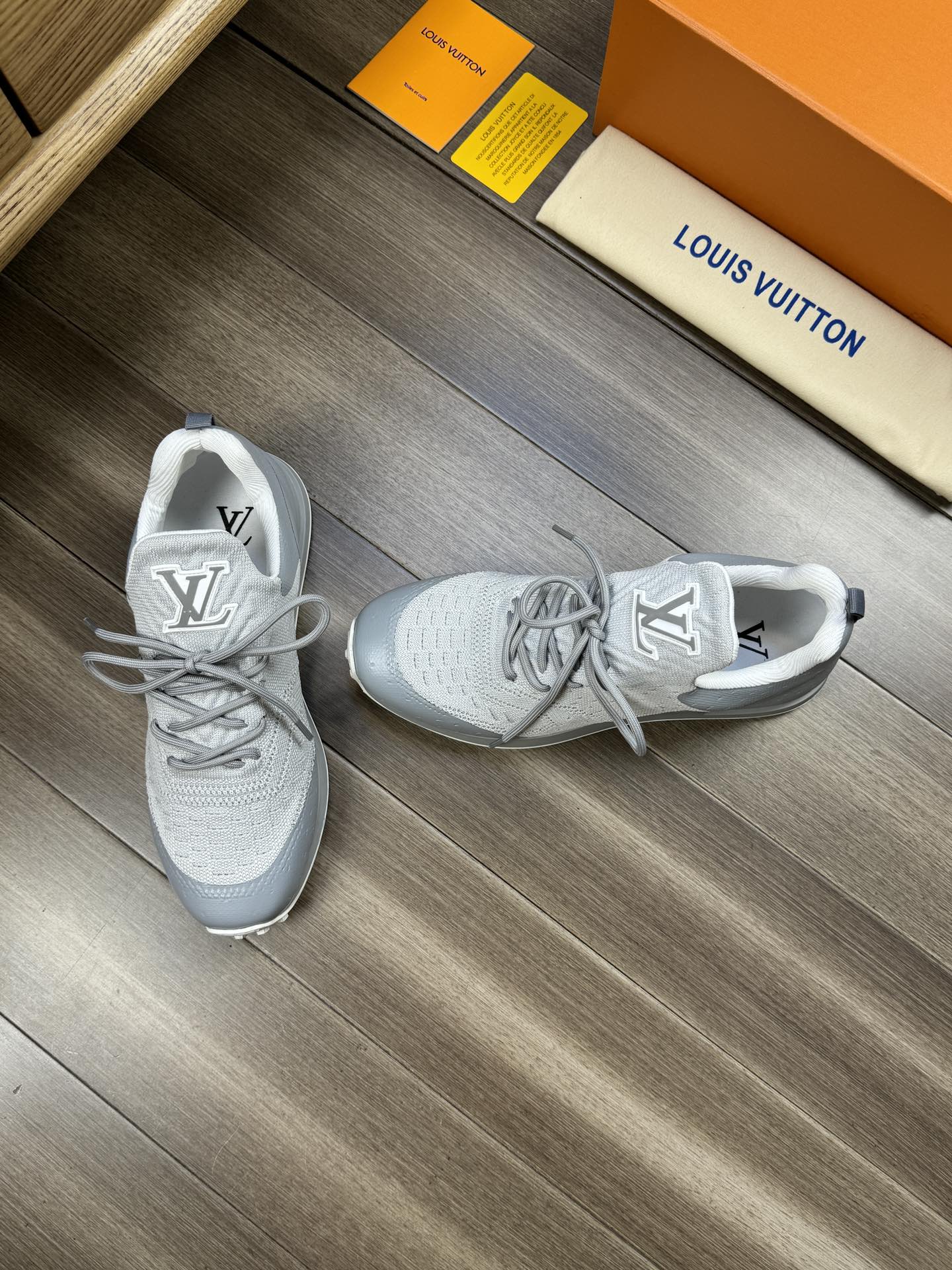 LV SNEAKERS IN GREY MESH BREATHABLE FABRIC AND CALFSKIN