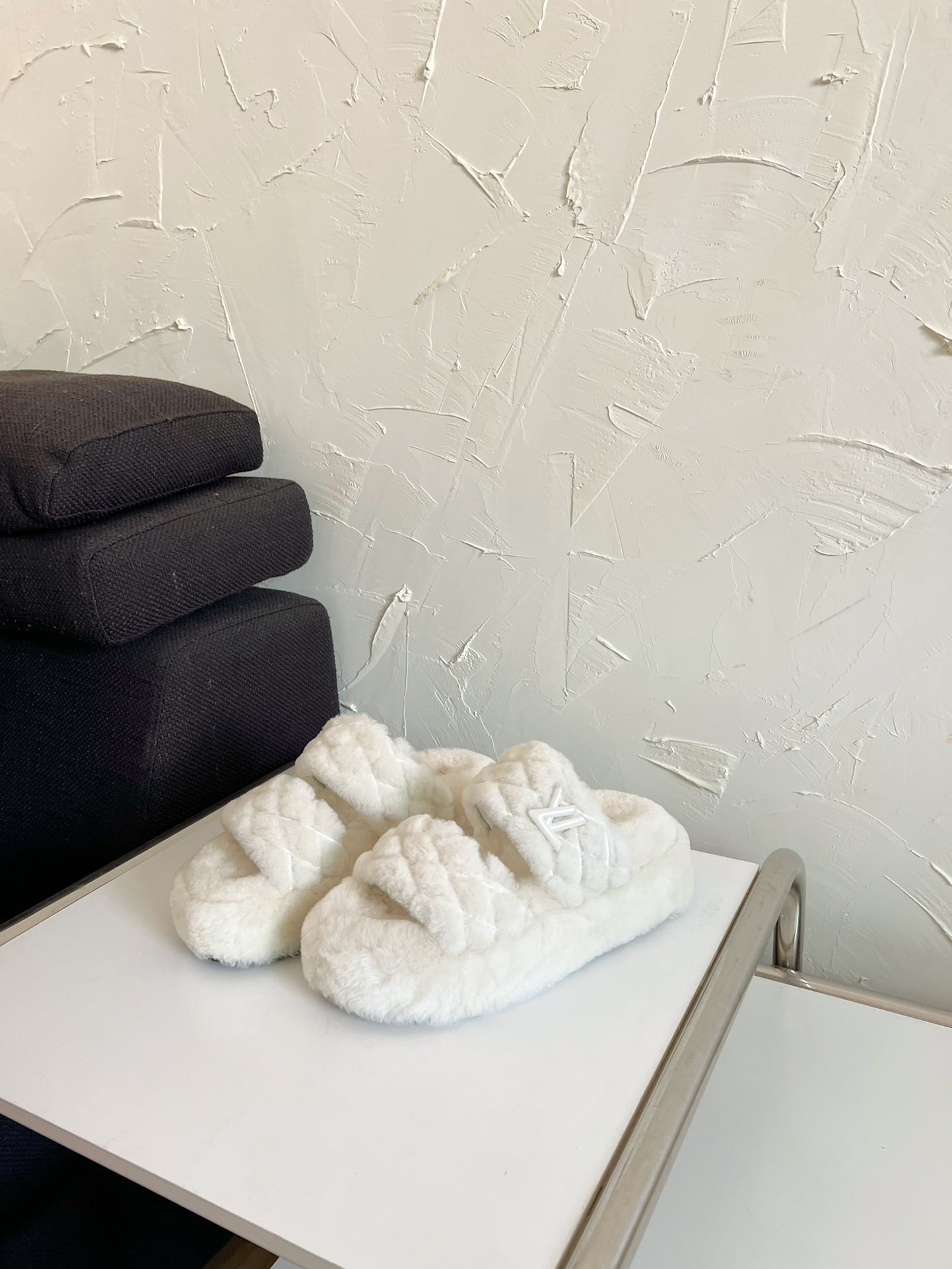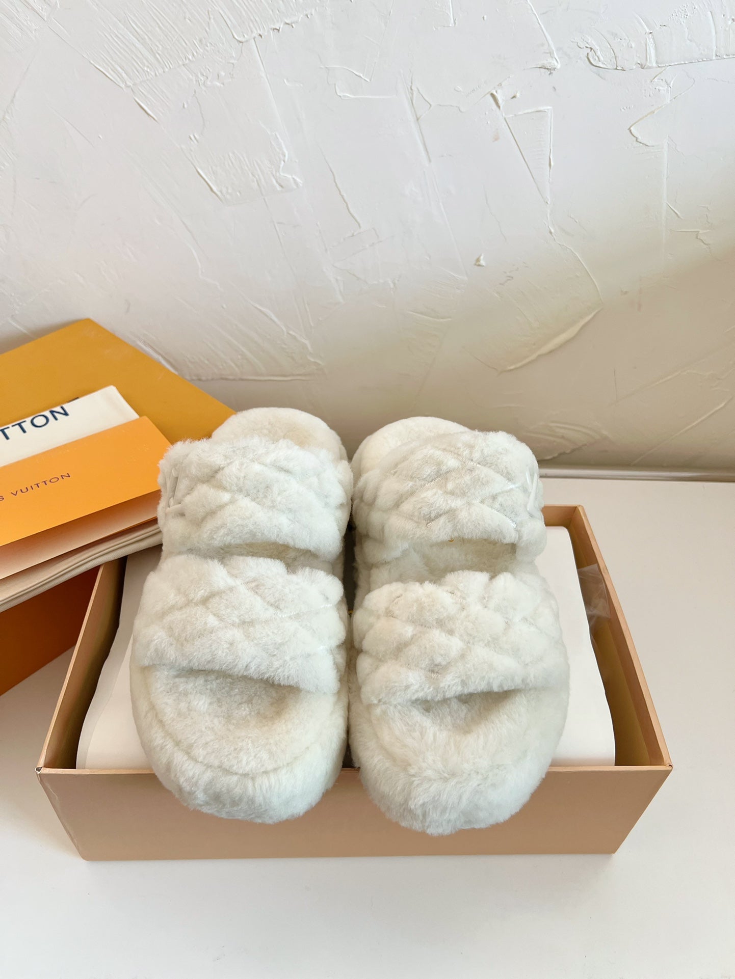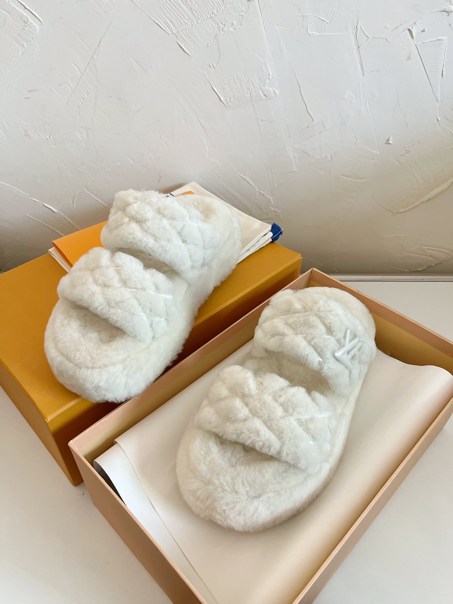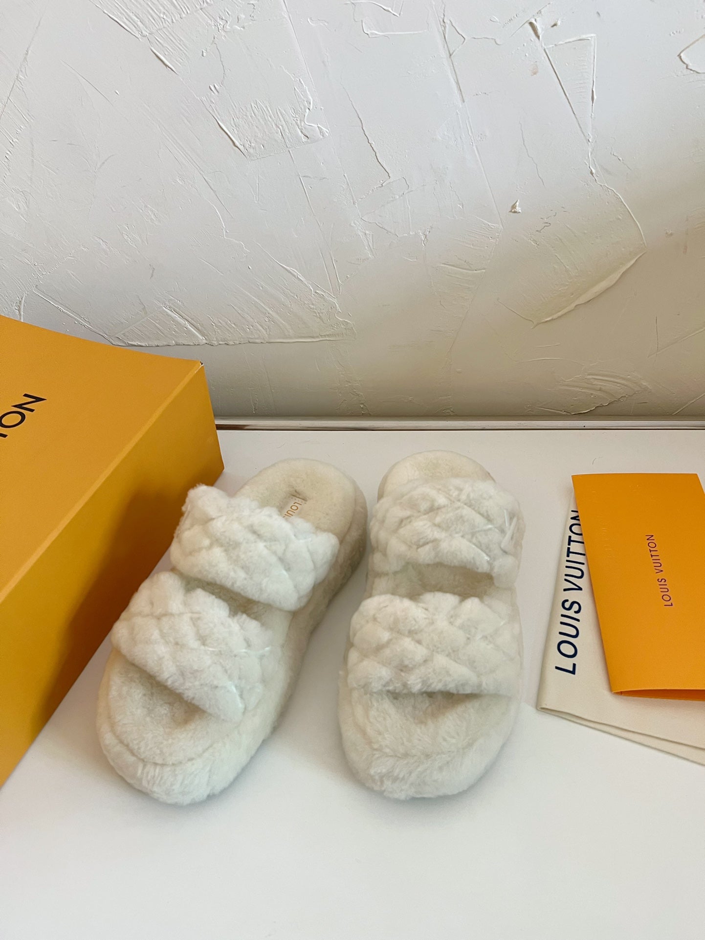 LV SUNSET PLATFORM COMFORT MULE IN WHITE SHEARLING