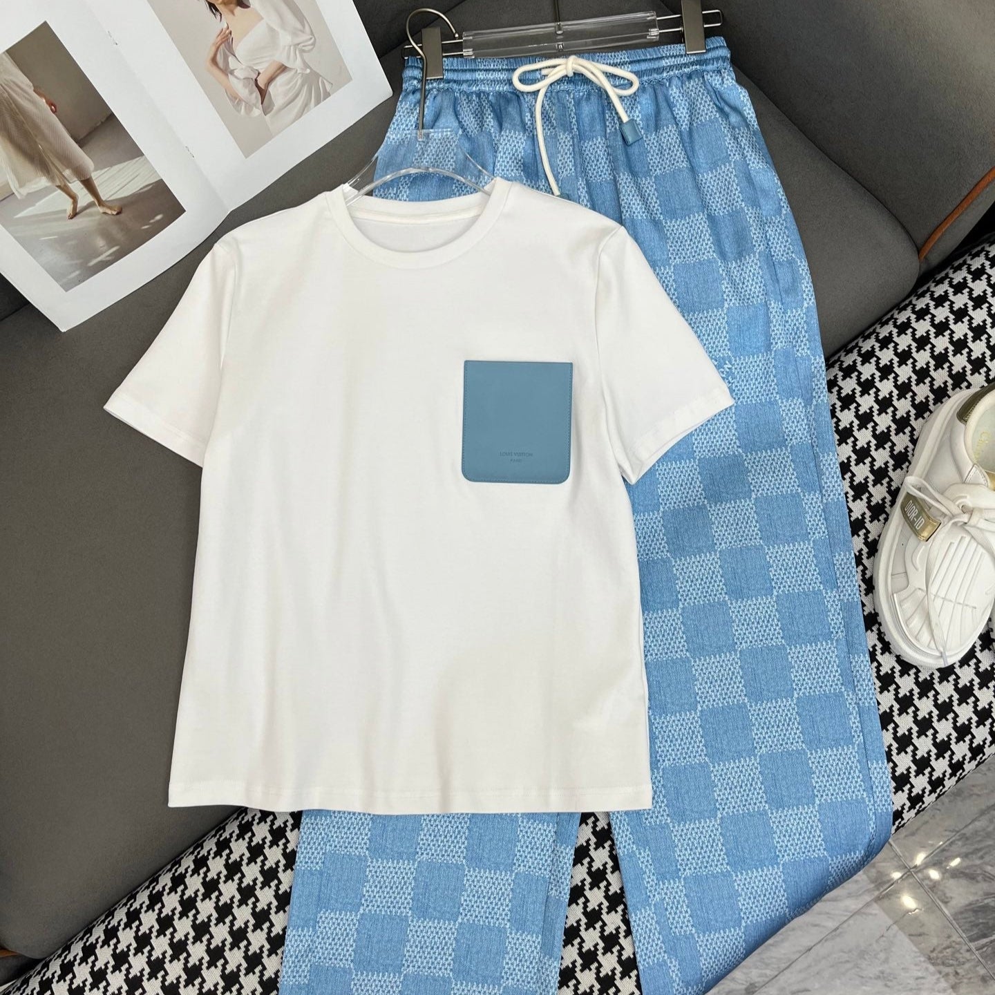 LV T SHIRT AND WIDE LEG PANTS SET BLUE 25S IN POLYESTER 266642