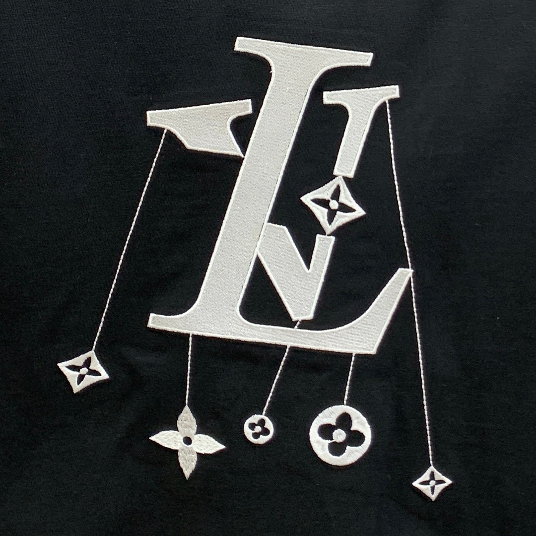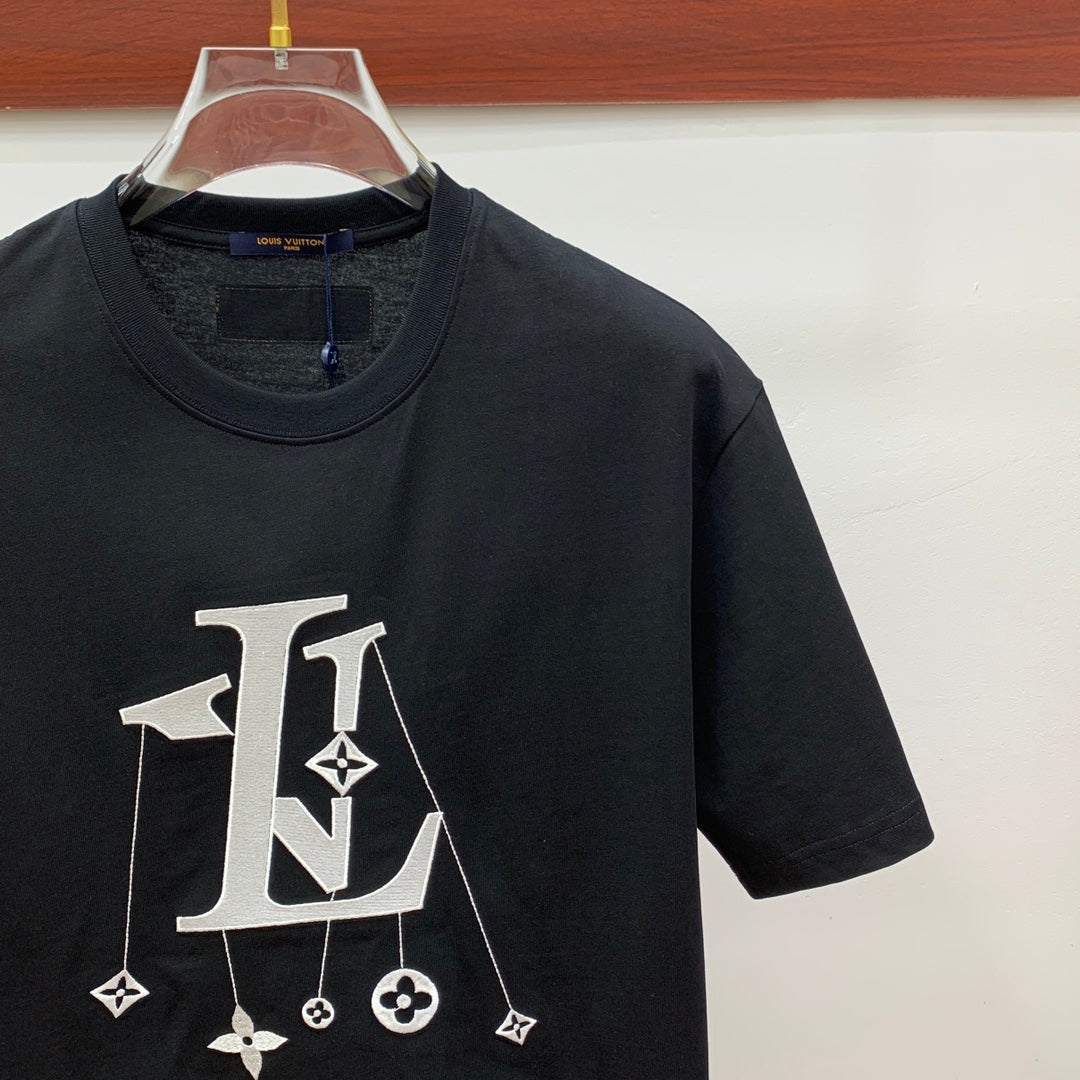 LV T-SHIRT IN BLACK COTTON STYLIZED LOGO 238873