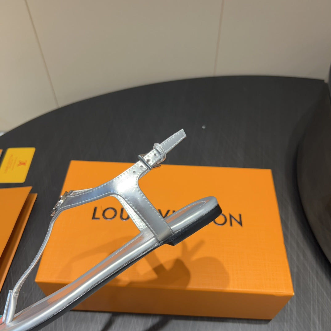 LV THONG SANDALS 25S IN SILVER CALFSKIN WITH SILVER HARDWARE