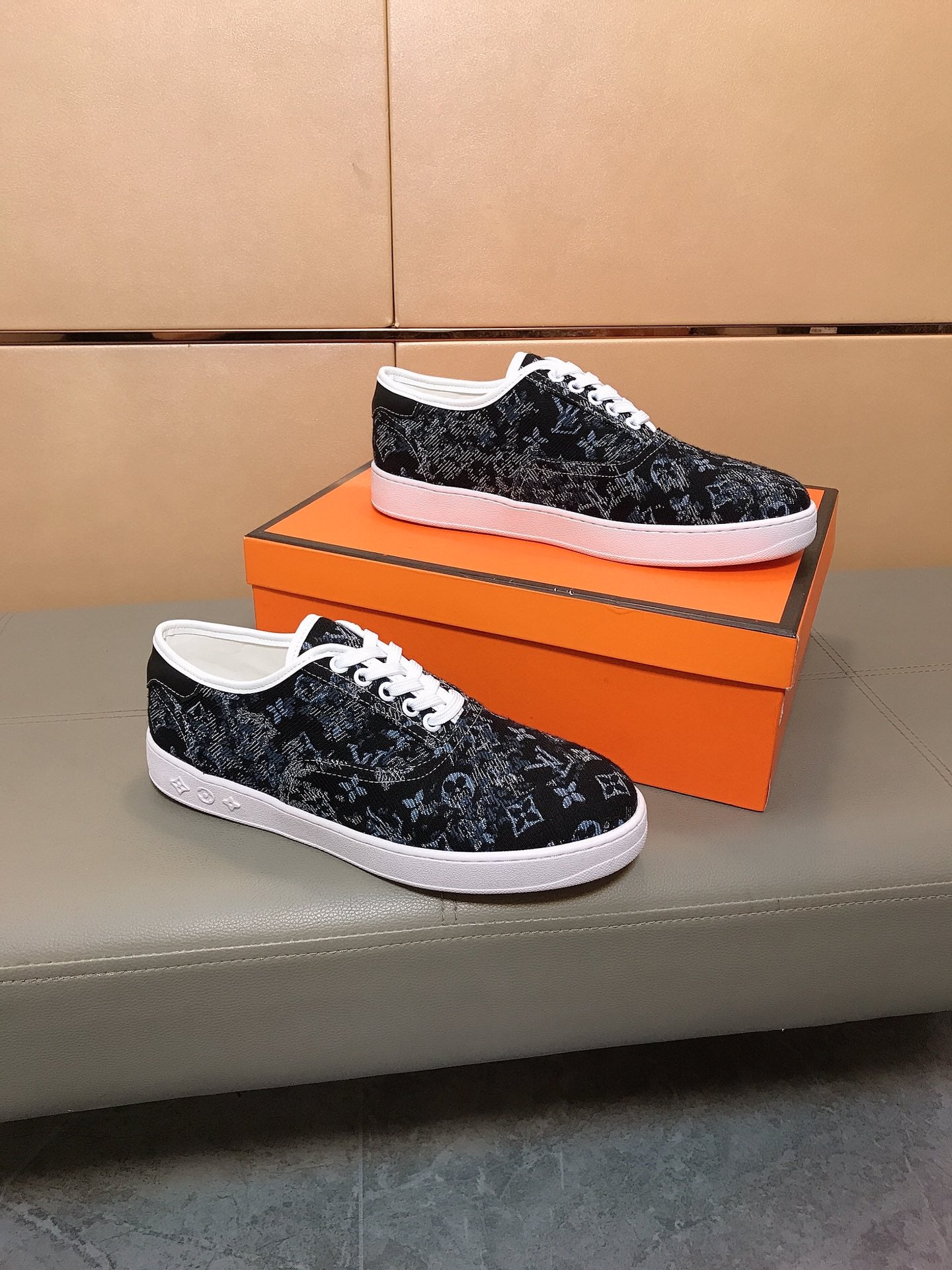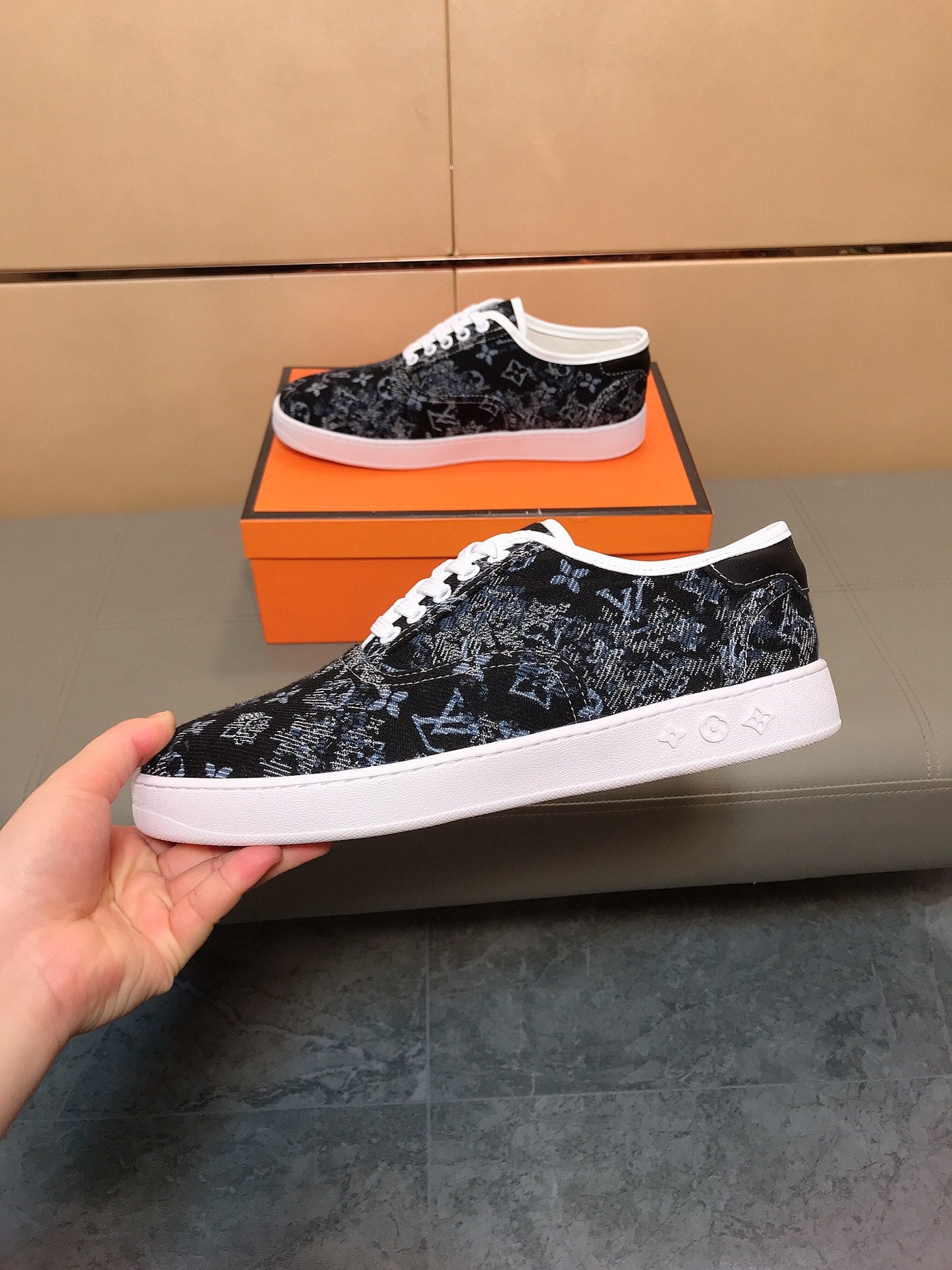 LV TRAINER BLACK MIX BLUE MONOGRAM JACQUARD