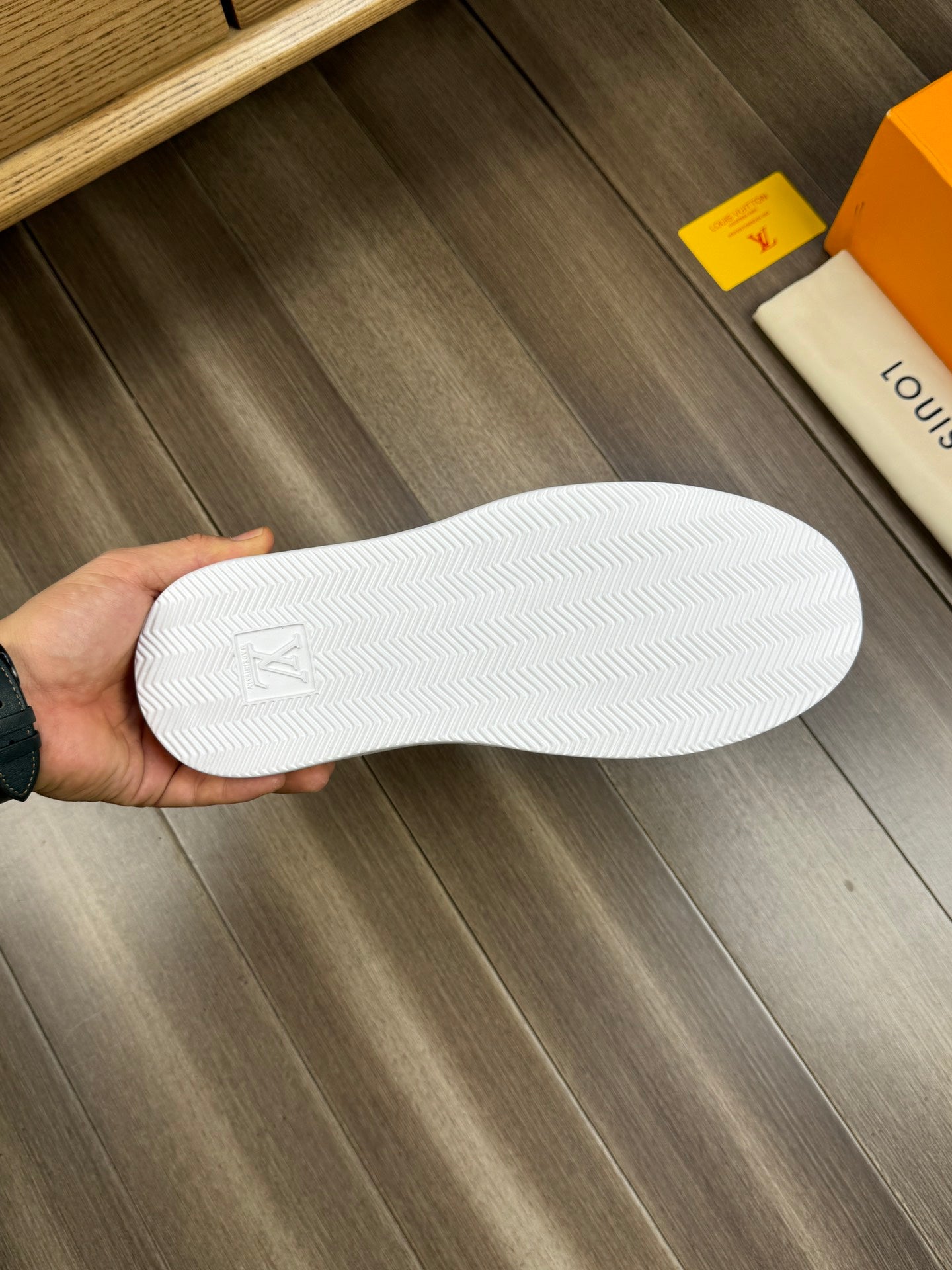 LV TRAINER SNEAKER WHITE MIX COPPER BROWN CALFSKIN AND BREATHABLE FABRIC