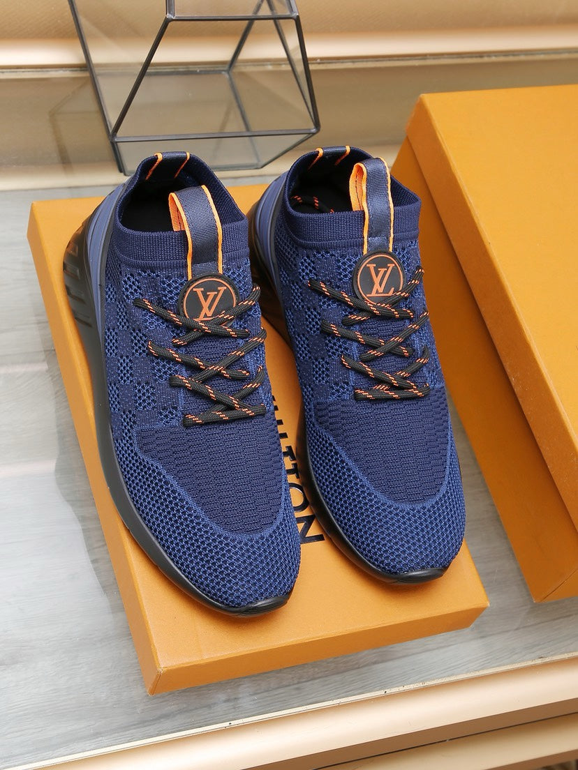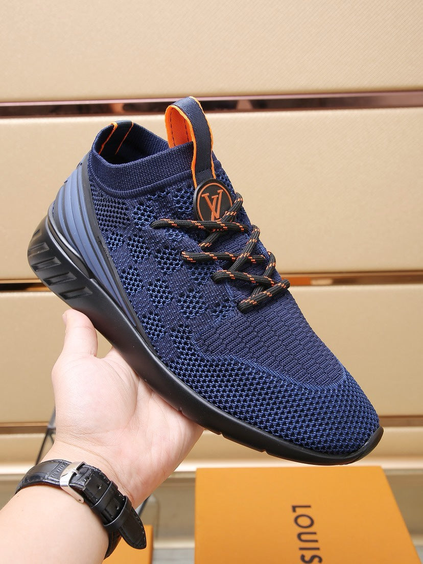 LV TRAINERS DAMIER NAVY BLUE MESH FABRIC