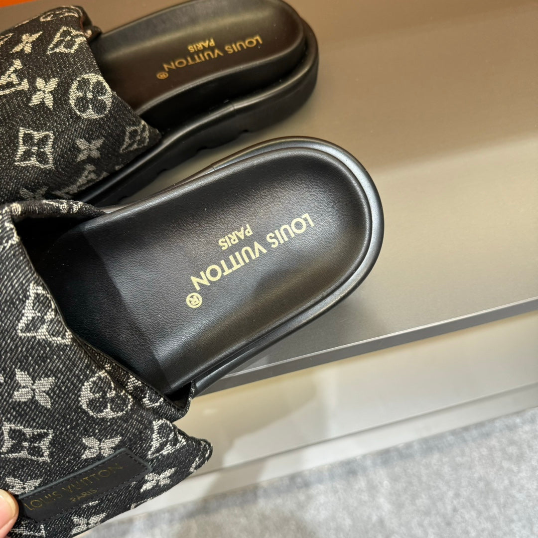 LV VELCRO SLIPPERS IN BLACK MONOGRAM JACQUARD