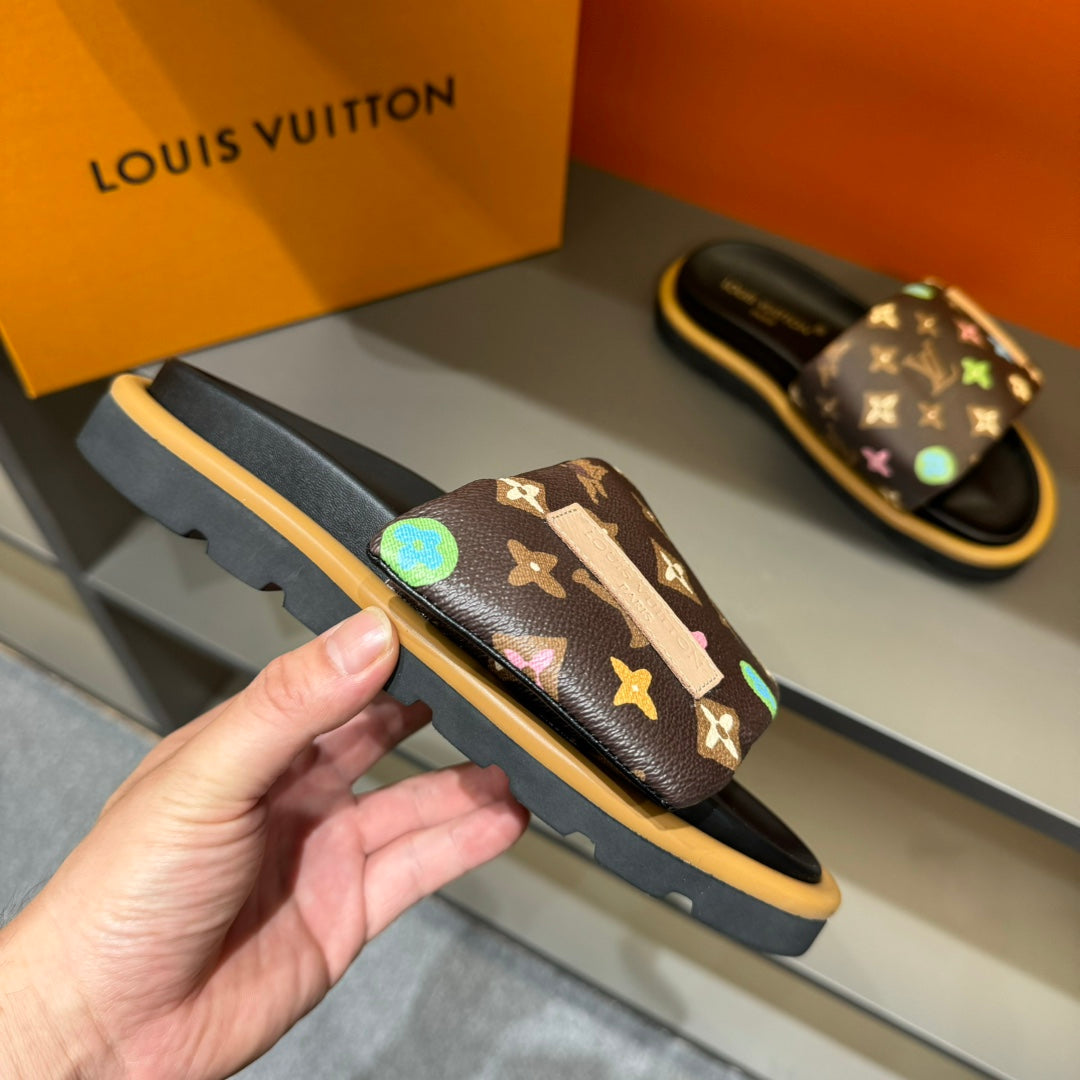 LV VELCRO SLIPPERS IN CHOCOLATE BROWN MONOGRAM CALFSKIN