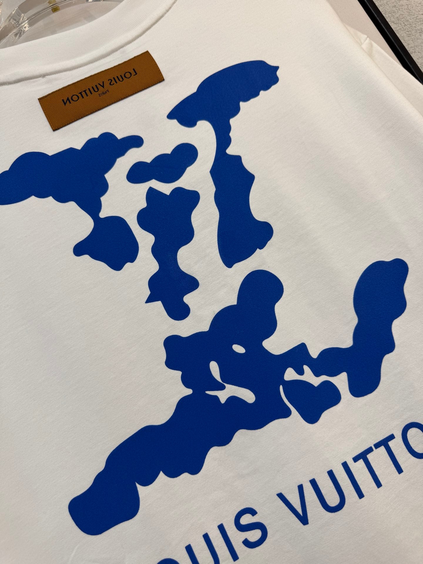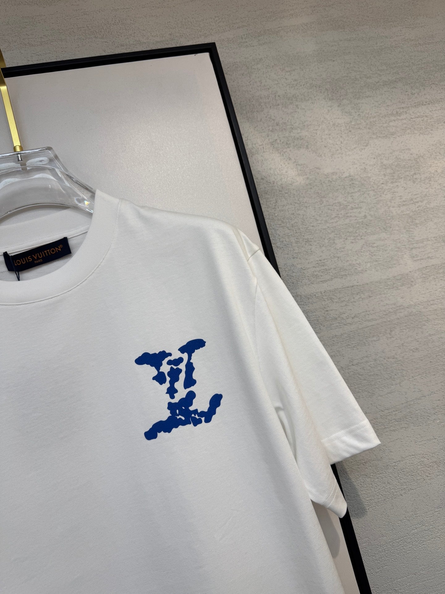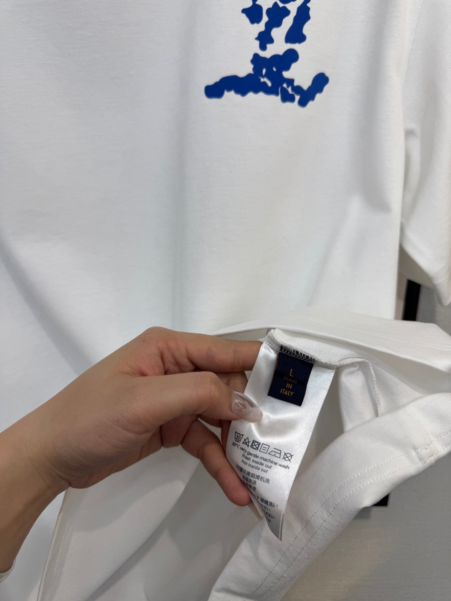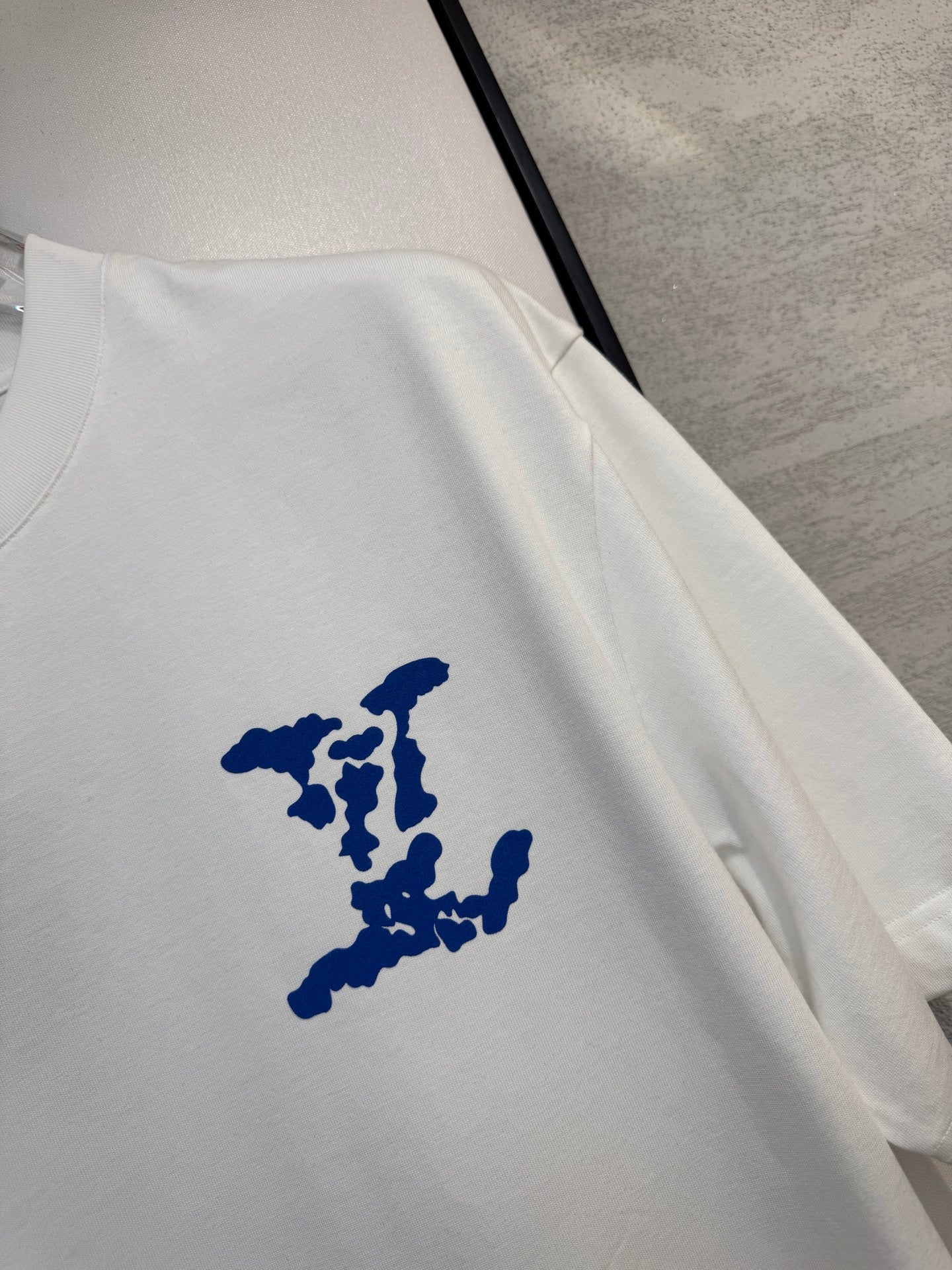 LV WHITE COTTON T-SHIRT BLUE STYLIZED LOGO 238917