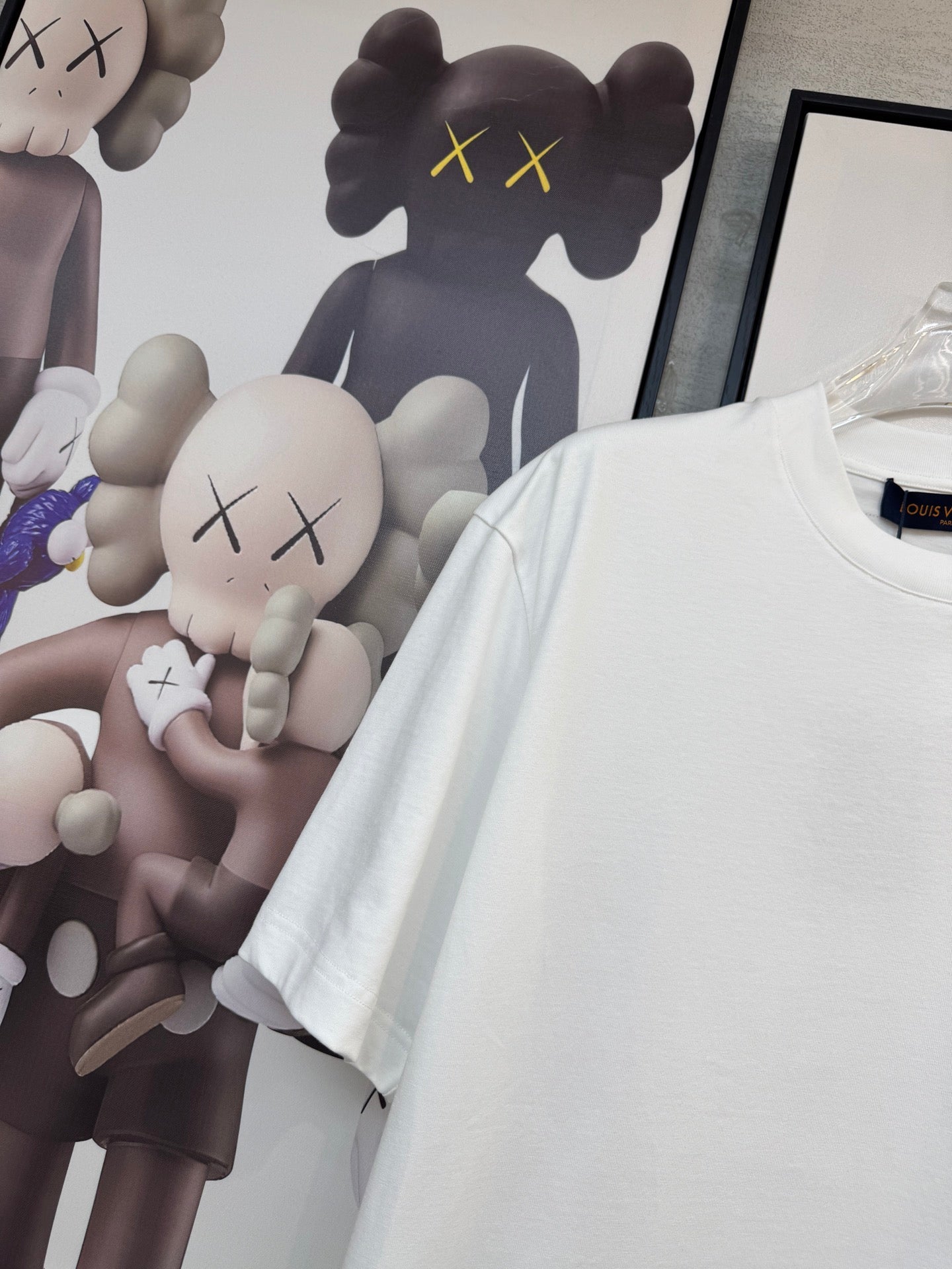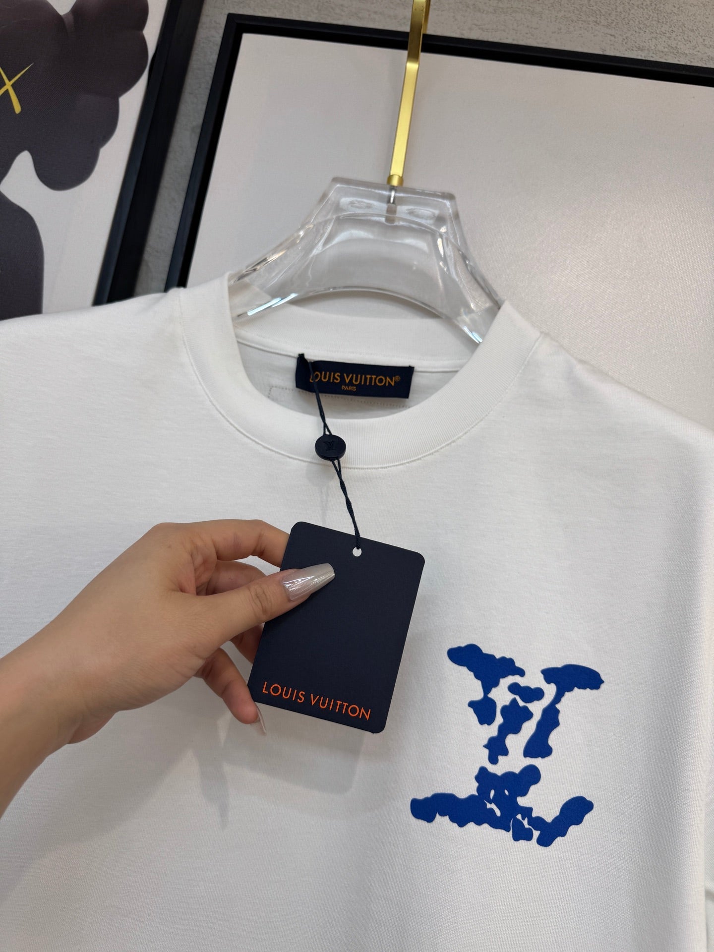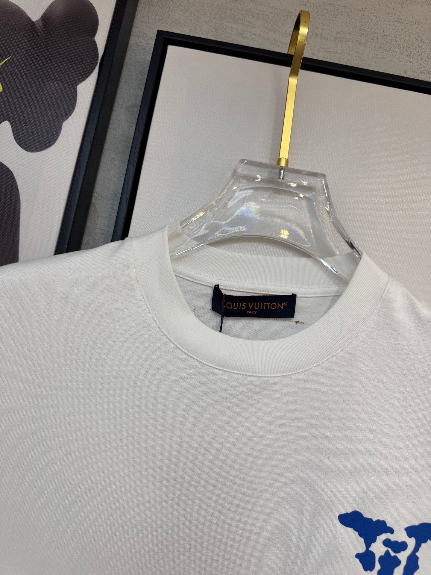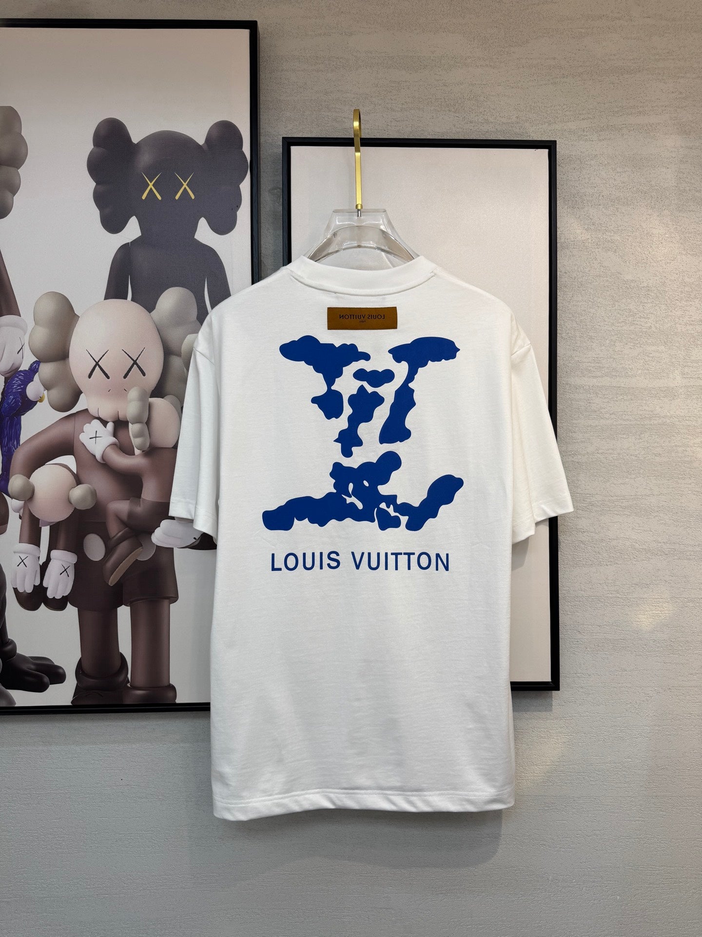 LV WHITE COTTON T-SHIRT BLUE STYLIZED LOGO 238917