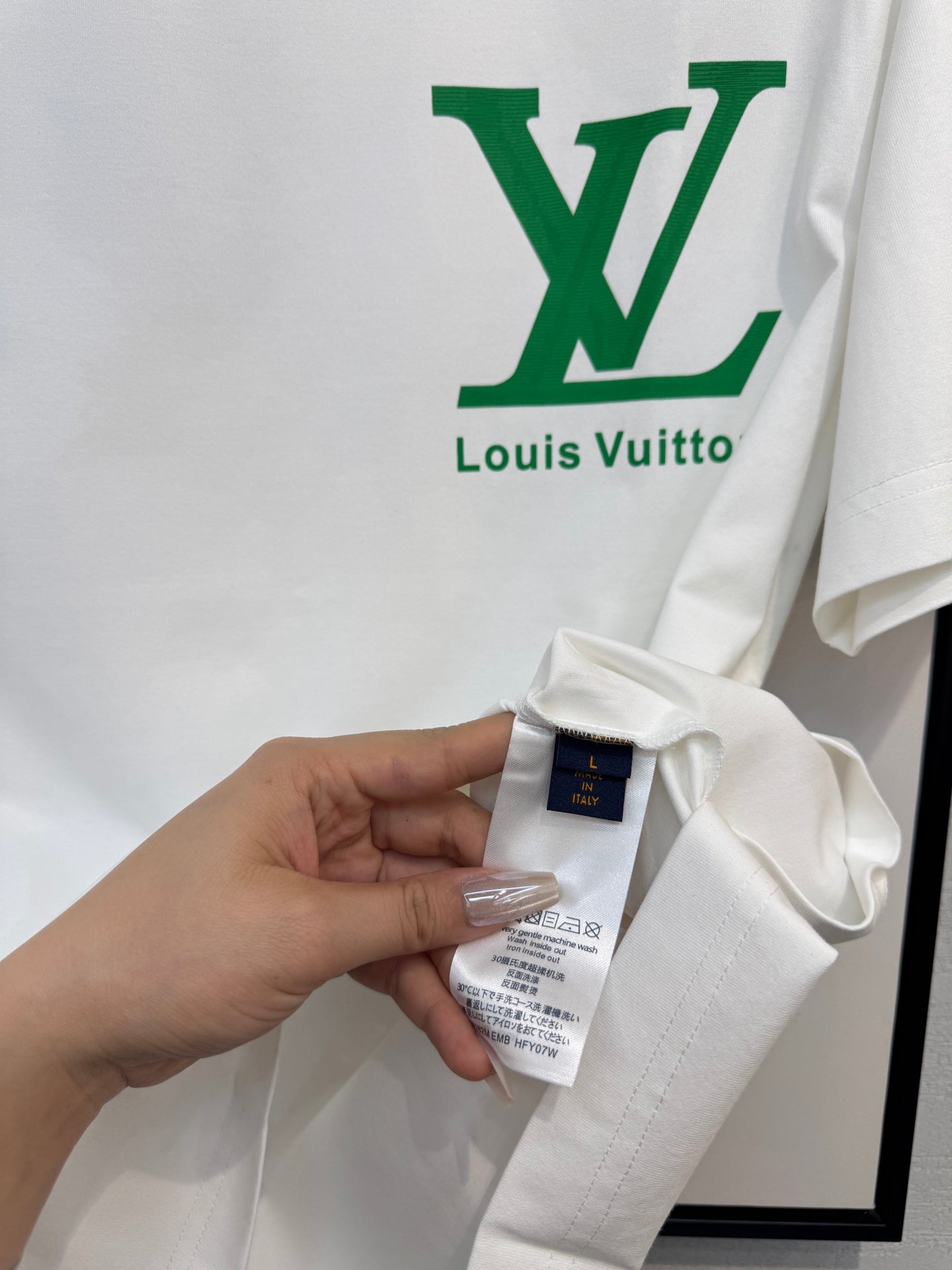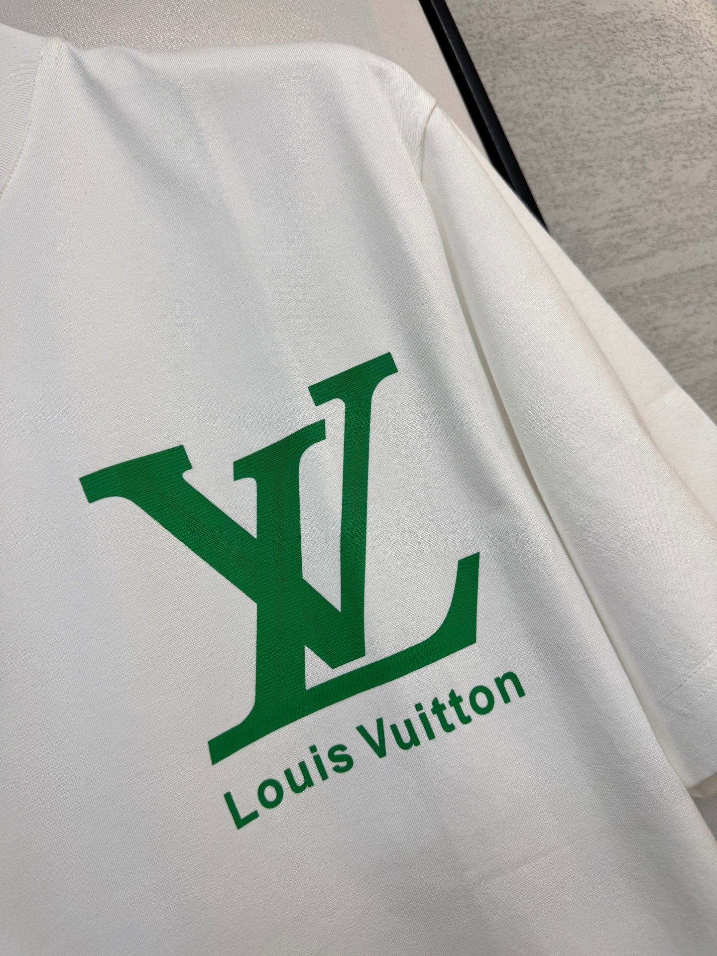 LV WHITE COTTON T-SHIRT GREEN LOGO 238914