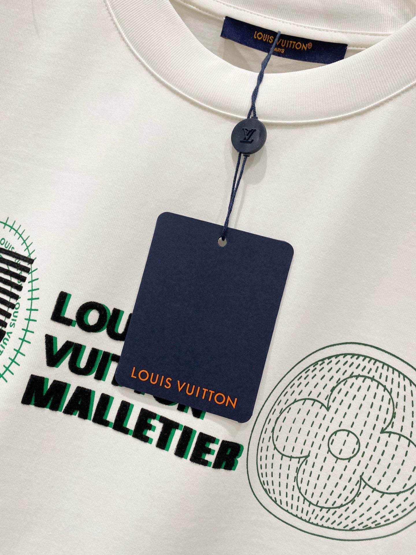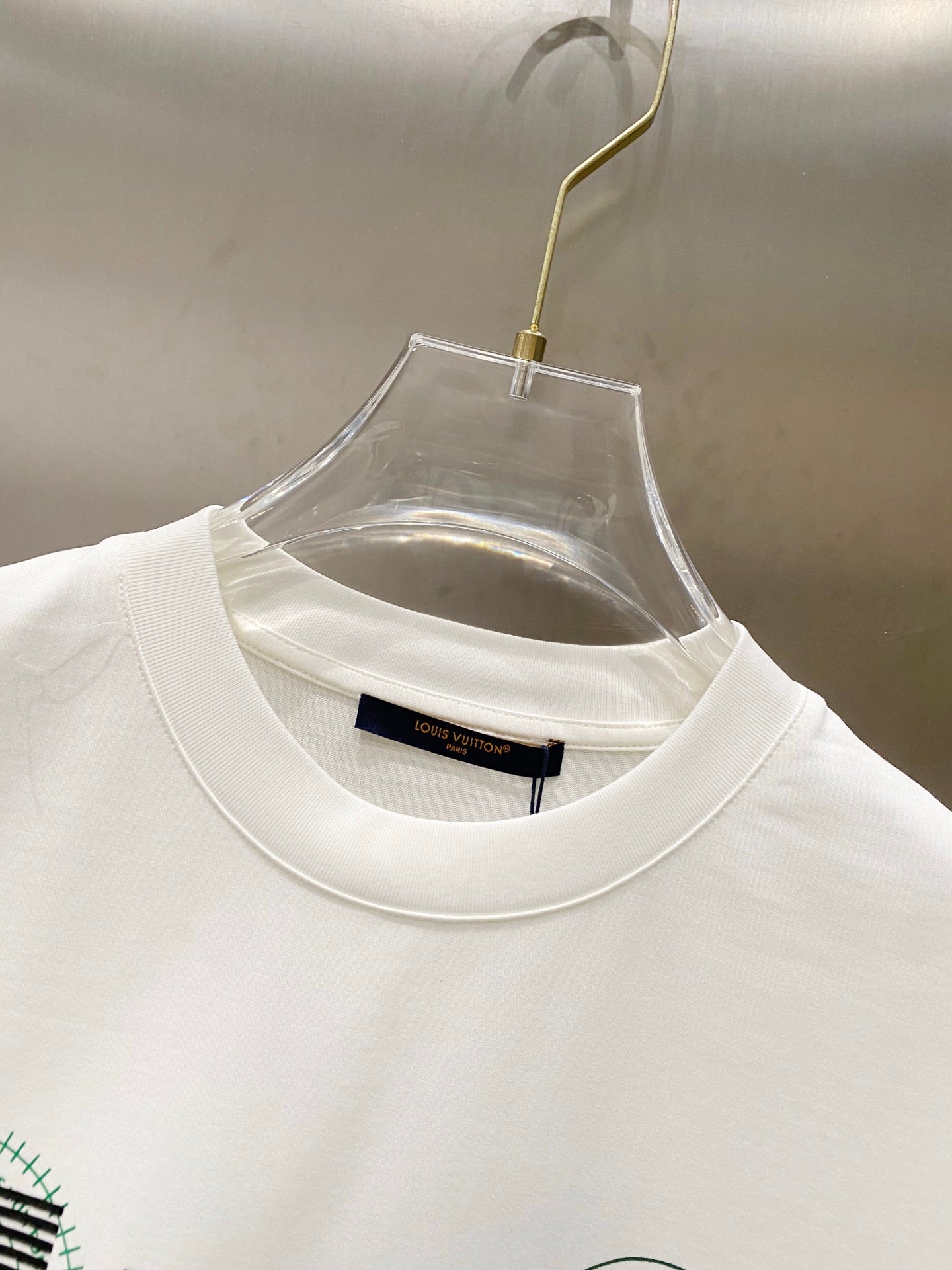 LV WHITE COTTON T-SHIRT GREEN LOGO PRINT 238843