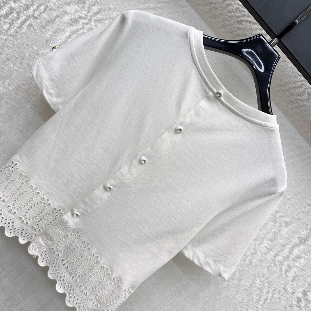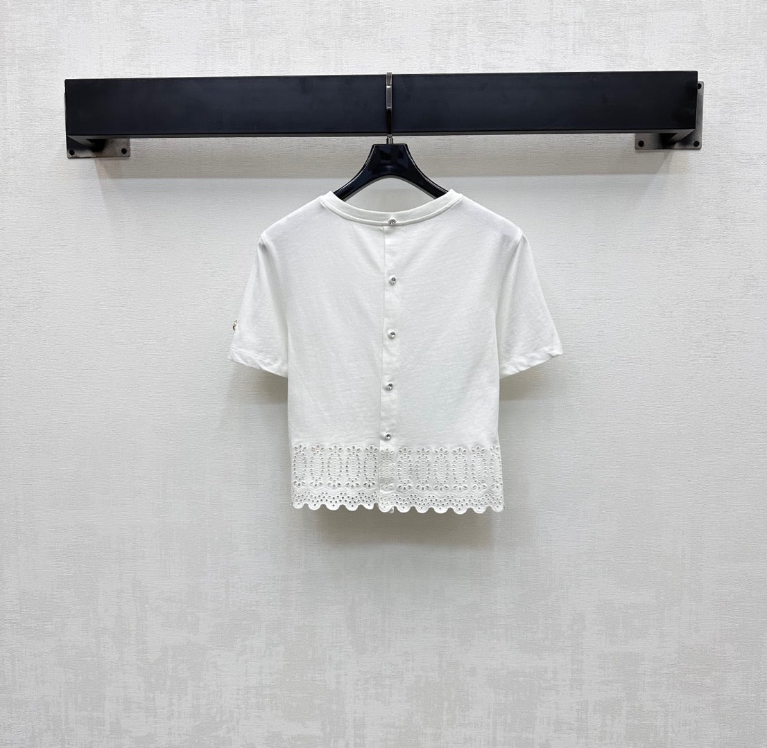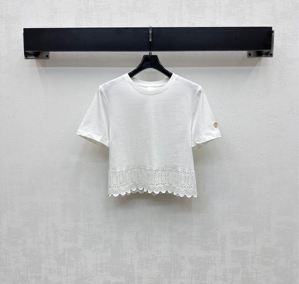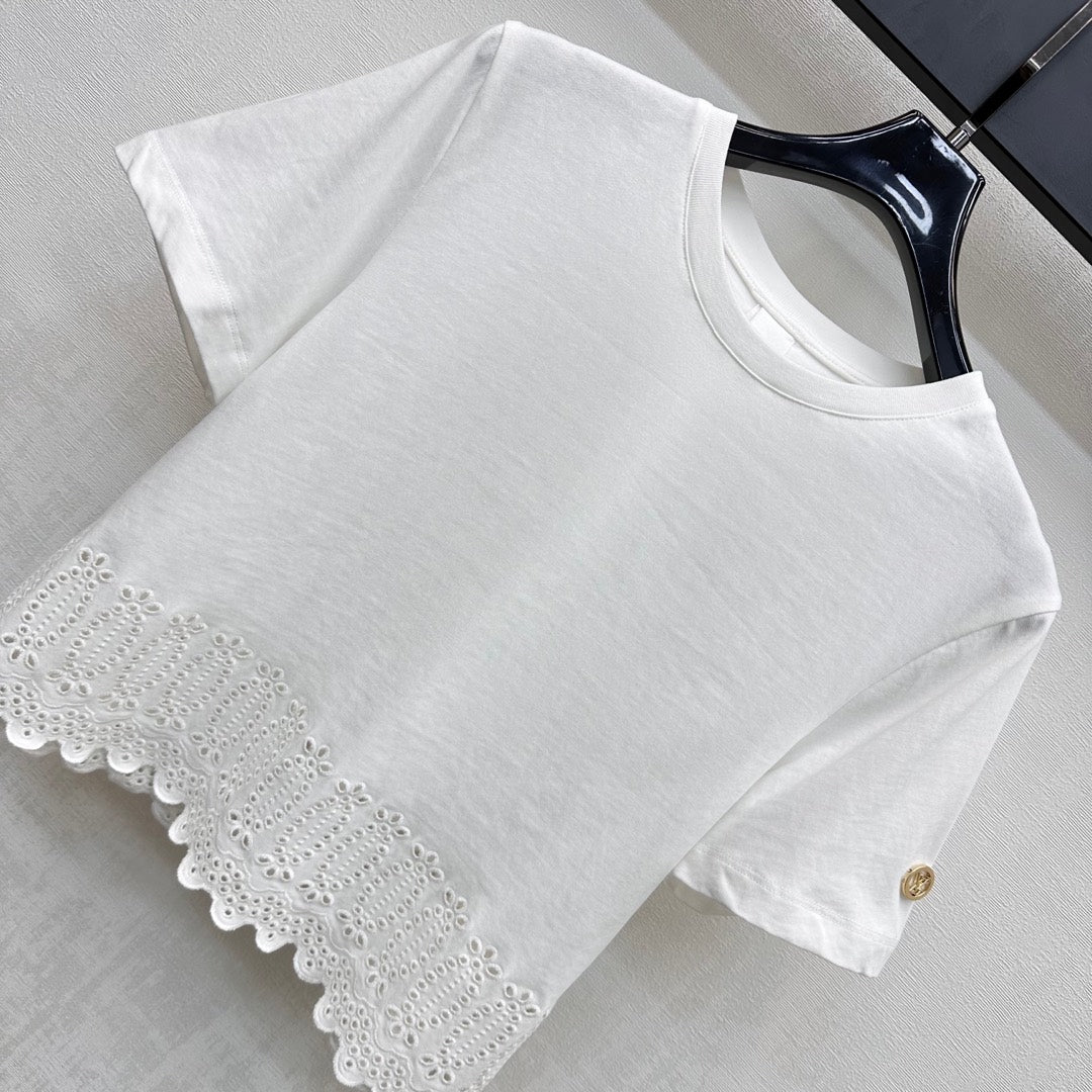 LV T-SHIRT WITH LACE-TRIMMED HEM