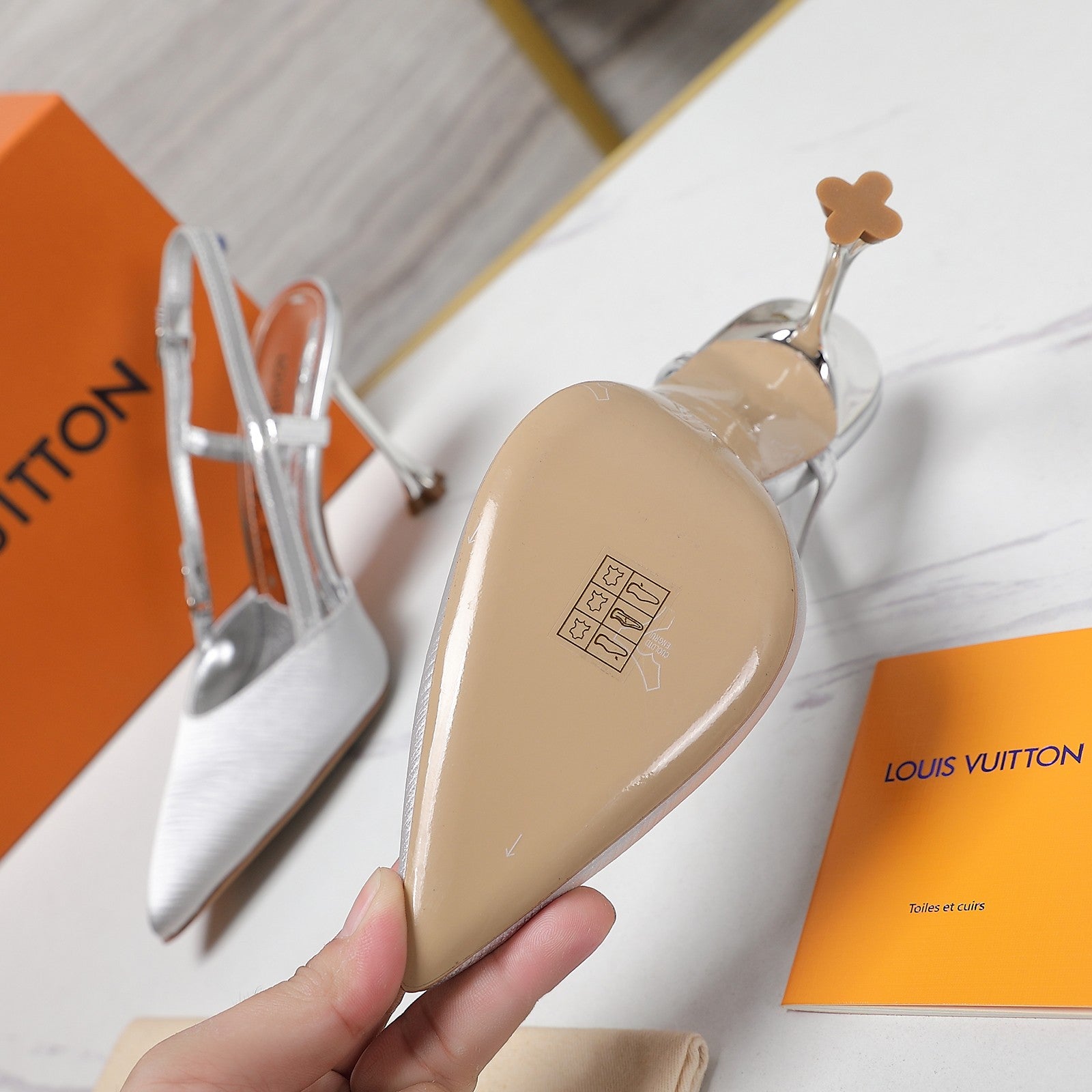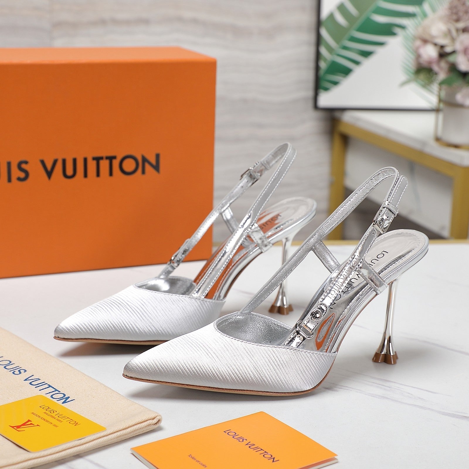 LV WOMEN BLOSSOM SLINGBACK PUMP IN SILVER EMBROIDERED FABRIC