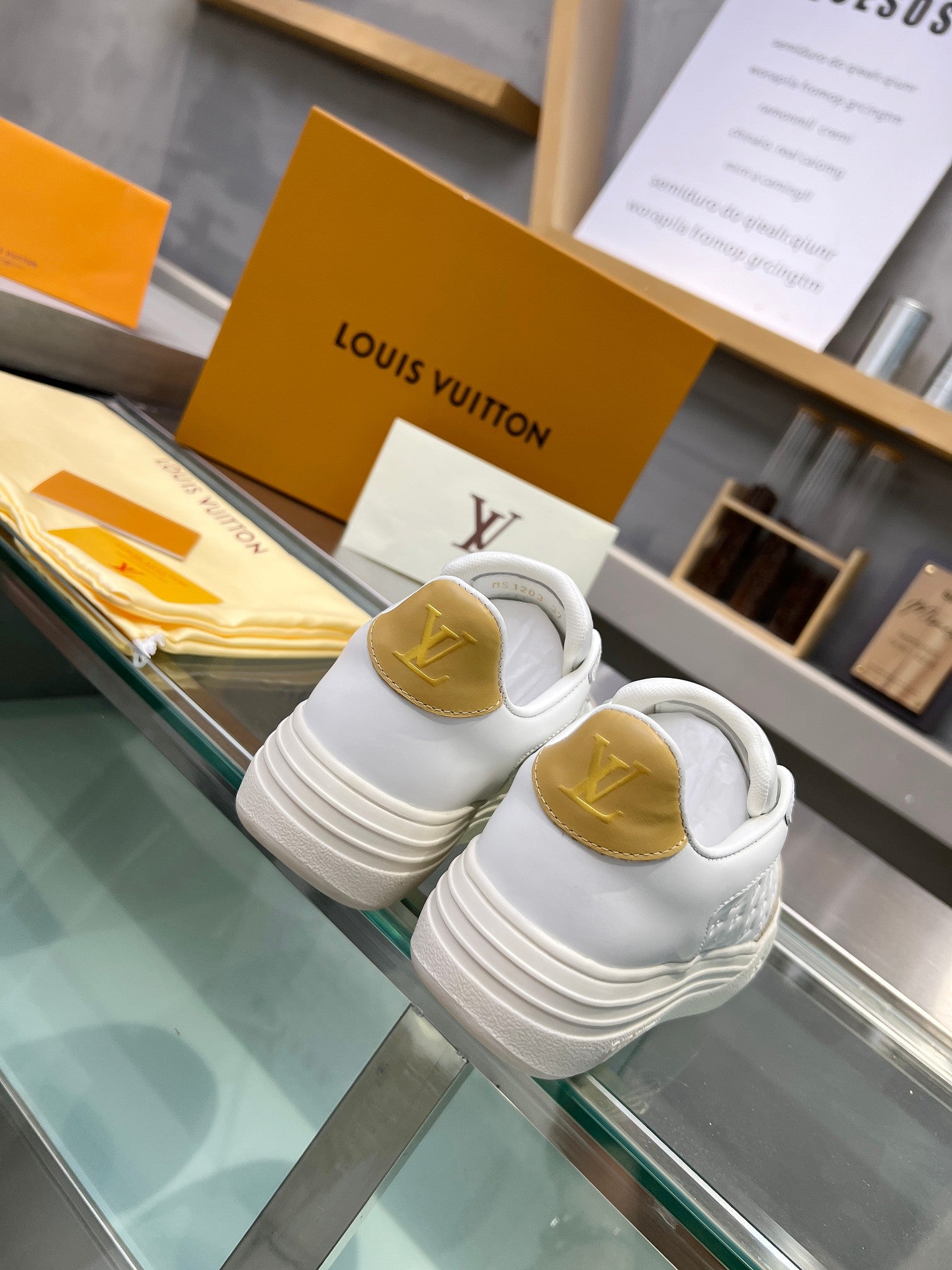LV WOMEN GROOVY PLATFORM IN CAMEL BROWN SUEDE MIX WHITE EMBOSSED CALFSKIN
