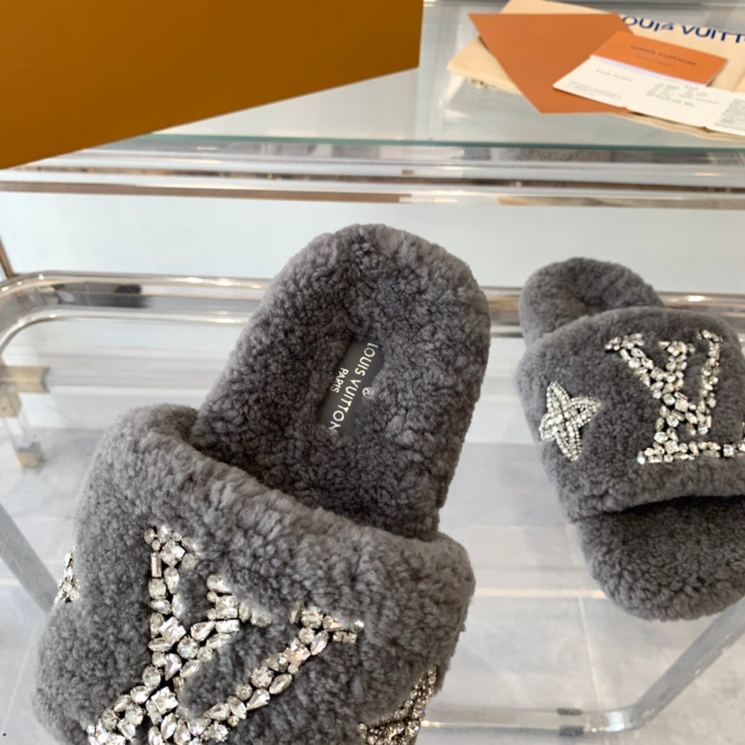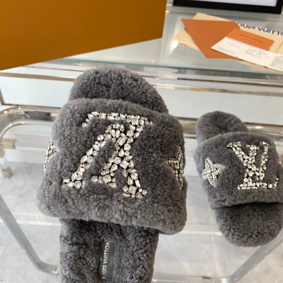 LV WOMEN'S PASEO FLAT SLIPPER IN GREY FLEECE
