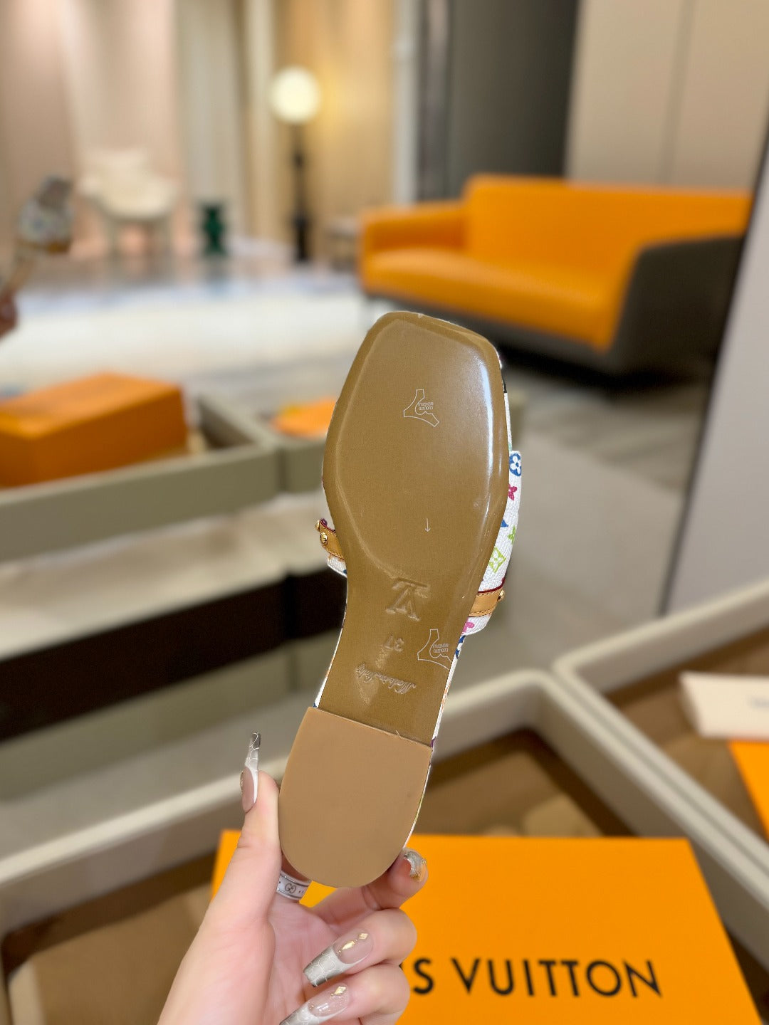 LV X TM 6AM FLAT MULE IN WHITE MONOGRAM CALFSKIN