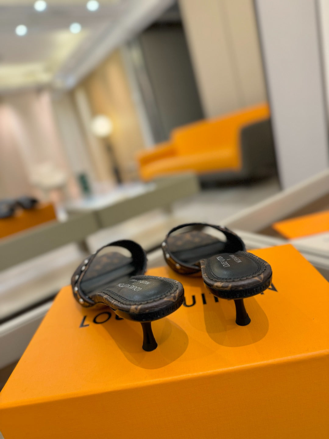 LV X TM 6AM HIGH 4 CM MULE IN CHOCOLATE BROWN MONOGRAM CALFSKIN