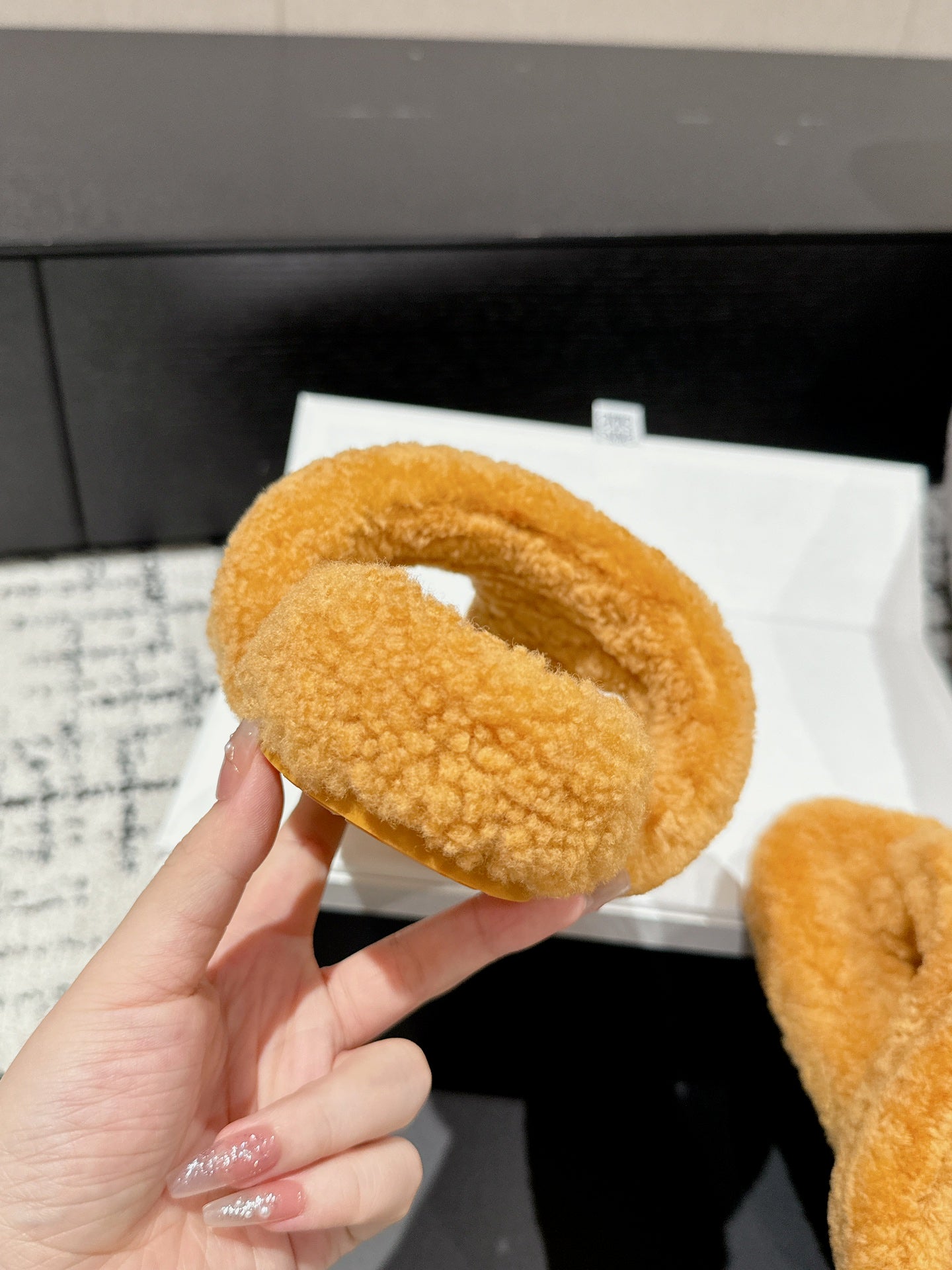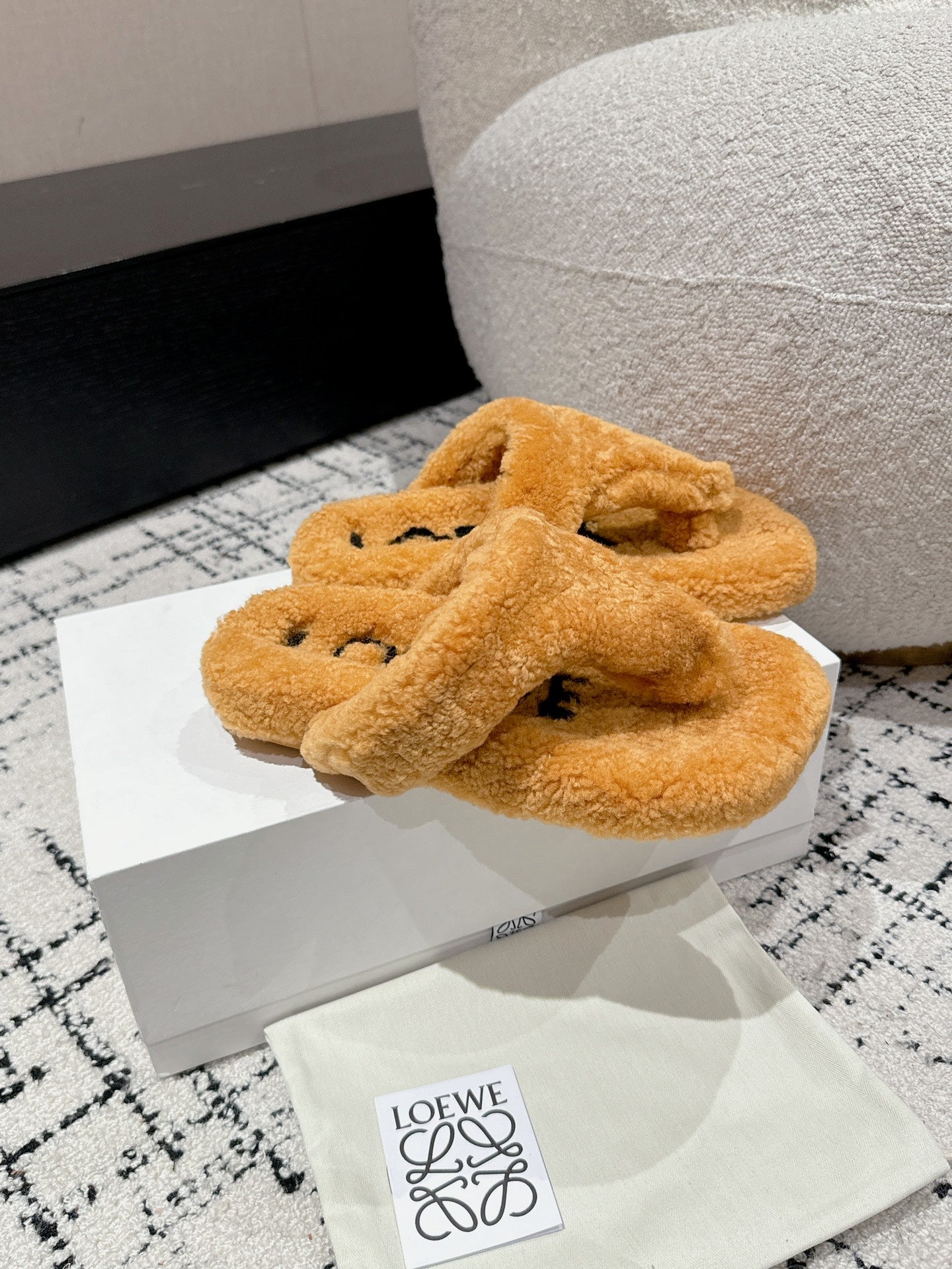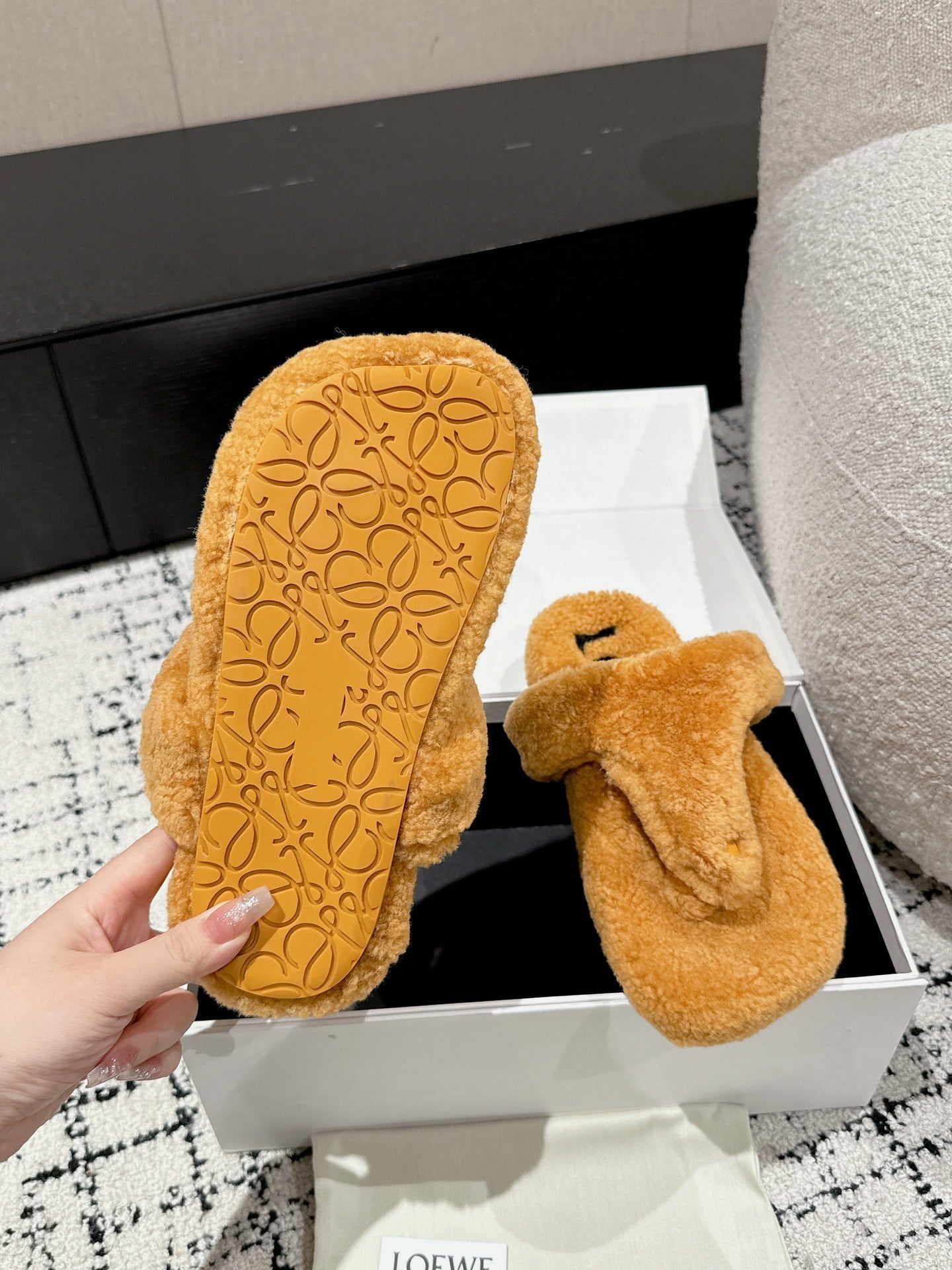 LW SHEARLING THONG SLIPPER IN BRONZE