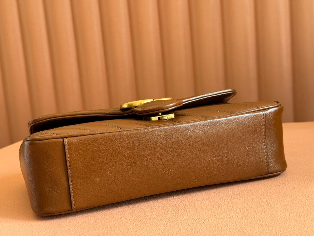 MARMONT MEDIUM SHOULDER BAG 26 IN BROWN MATELASSE CHEVRON LAMBSKIN