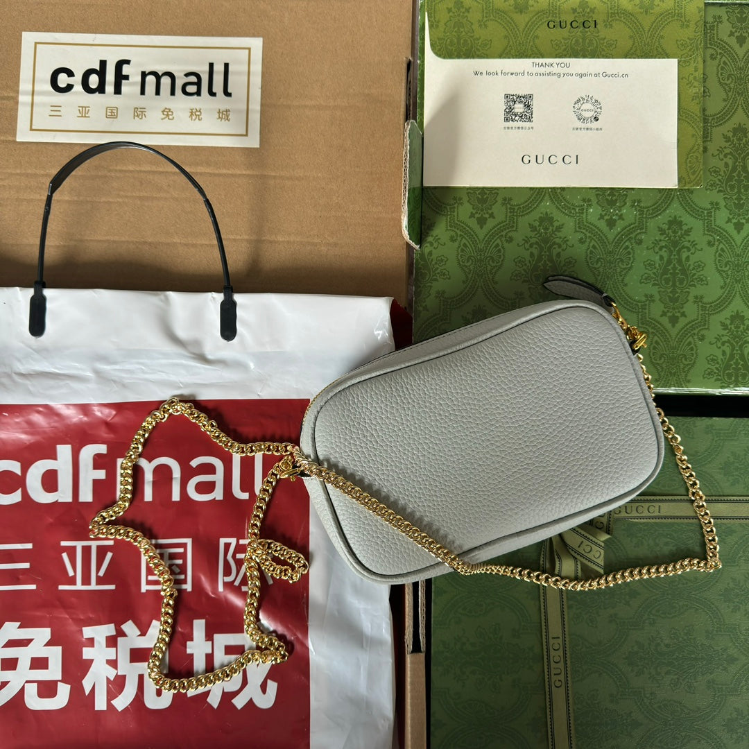 MARMONT MINI SHOULDER BAG 18 IN LIGHT GRAY CALFSKIN GOLD HARDWARE