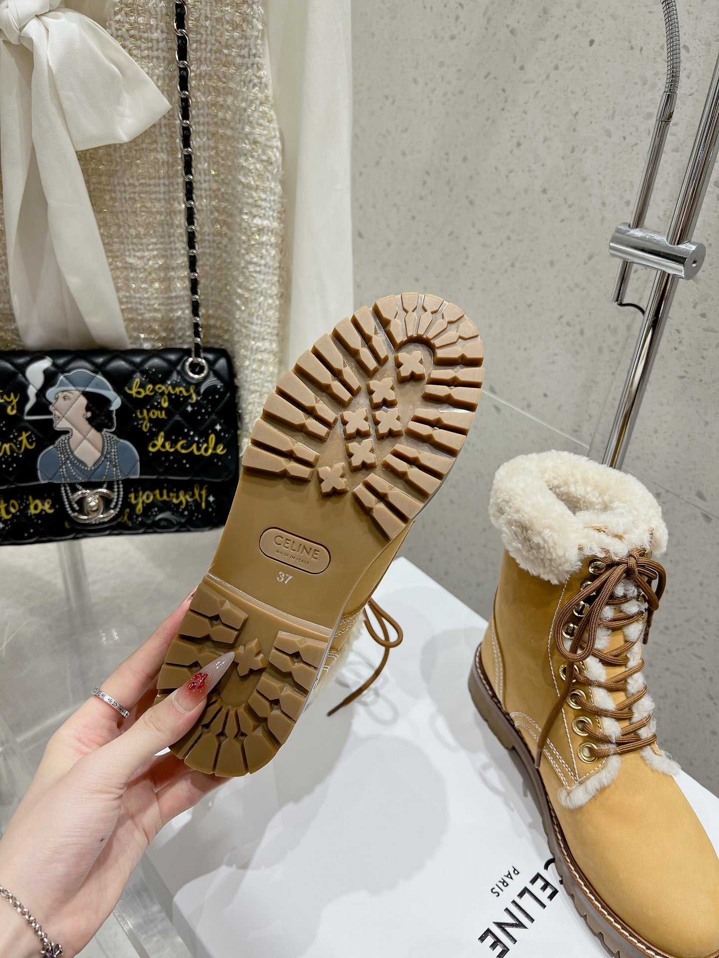 MARTIN BOOT IN PEANUT BROWN SUEDE AND WHITE FLEECE