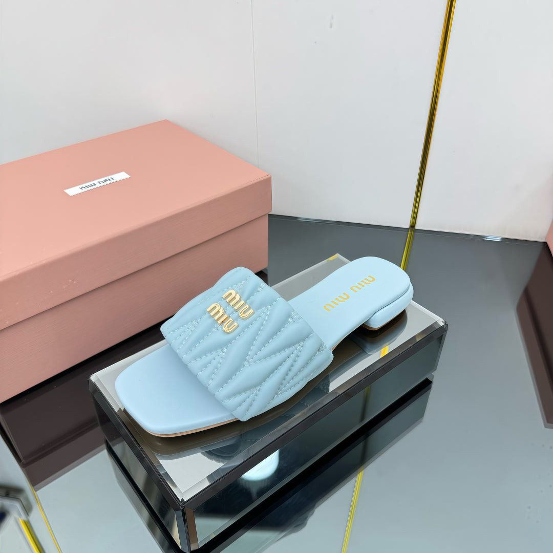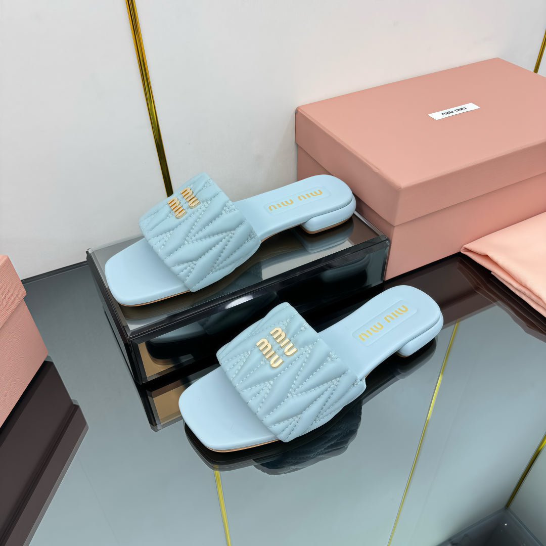MATELASSÉ SLIDES IN BABY BLUE CALFSKIN