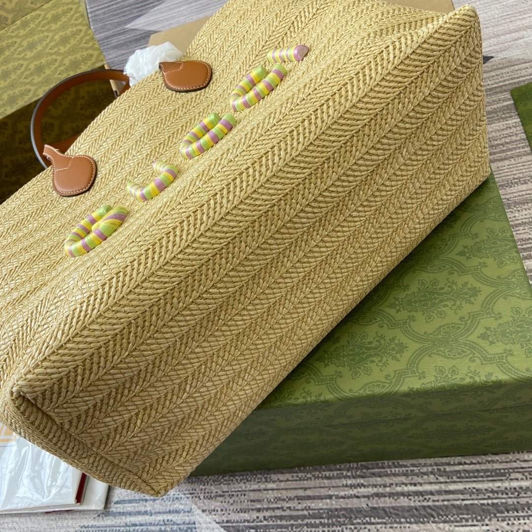 MEDIUM 38 STRAW-EFFECT TOTE BROWN MIX BEIGE