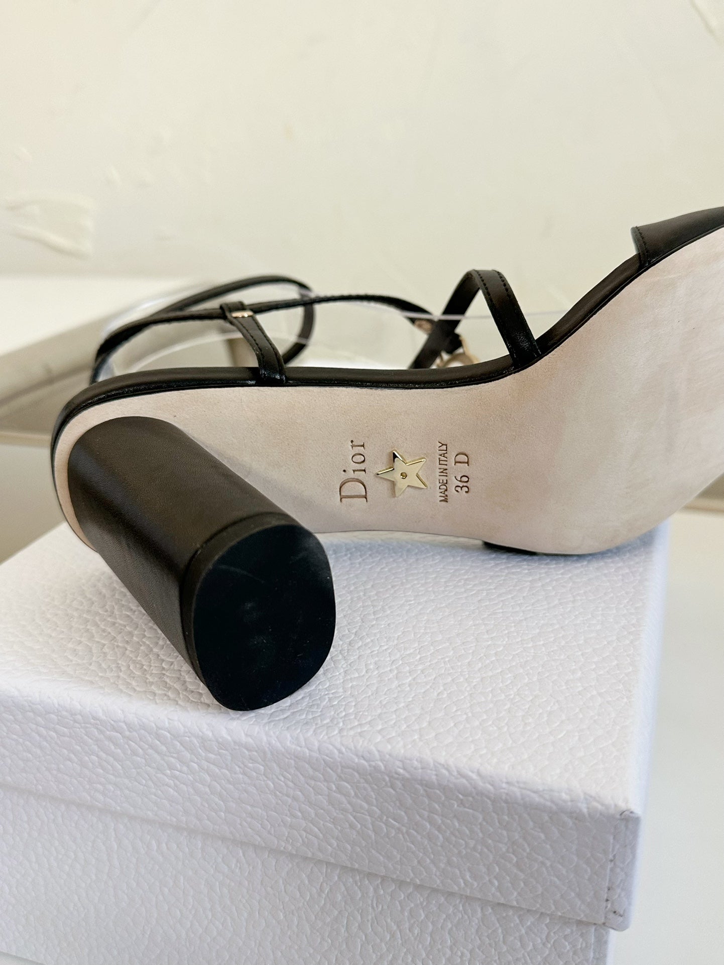 MEDIUM SQUARE HEEL SANDAL IN BLACK LAMBSKIN
