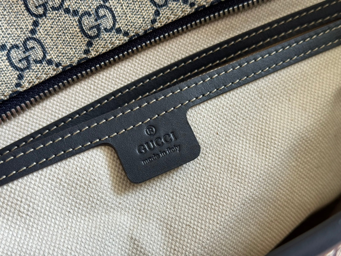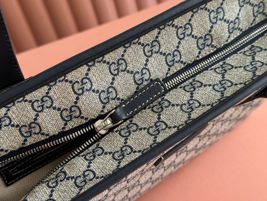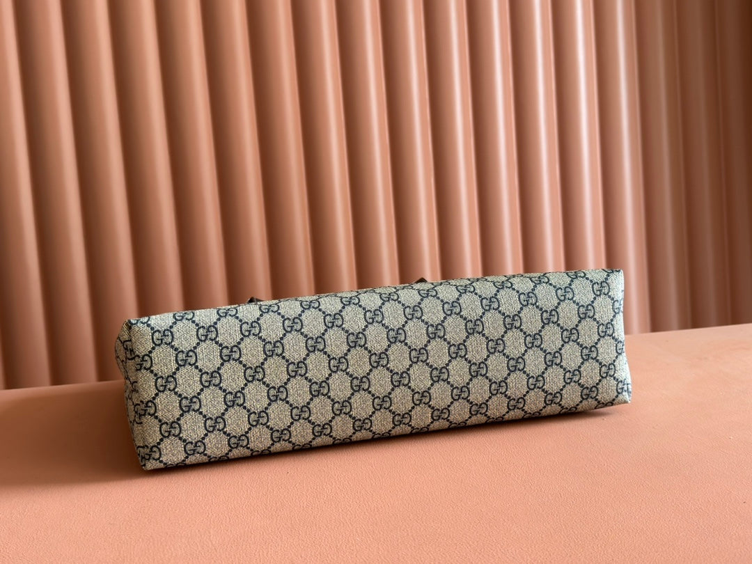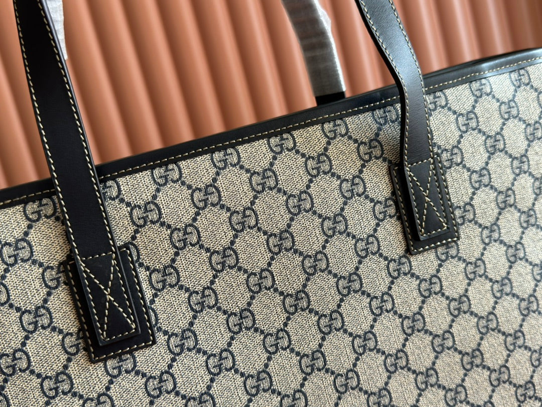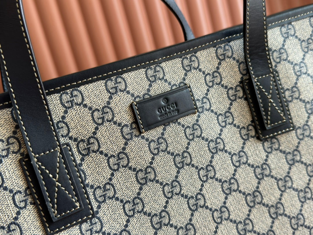 MEDIUM TOTE BAG 38 IN BEIGE AND BROWN GG COATED FABRIC BLACK CALFSKIN