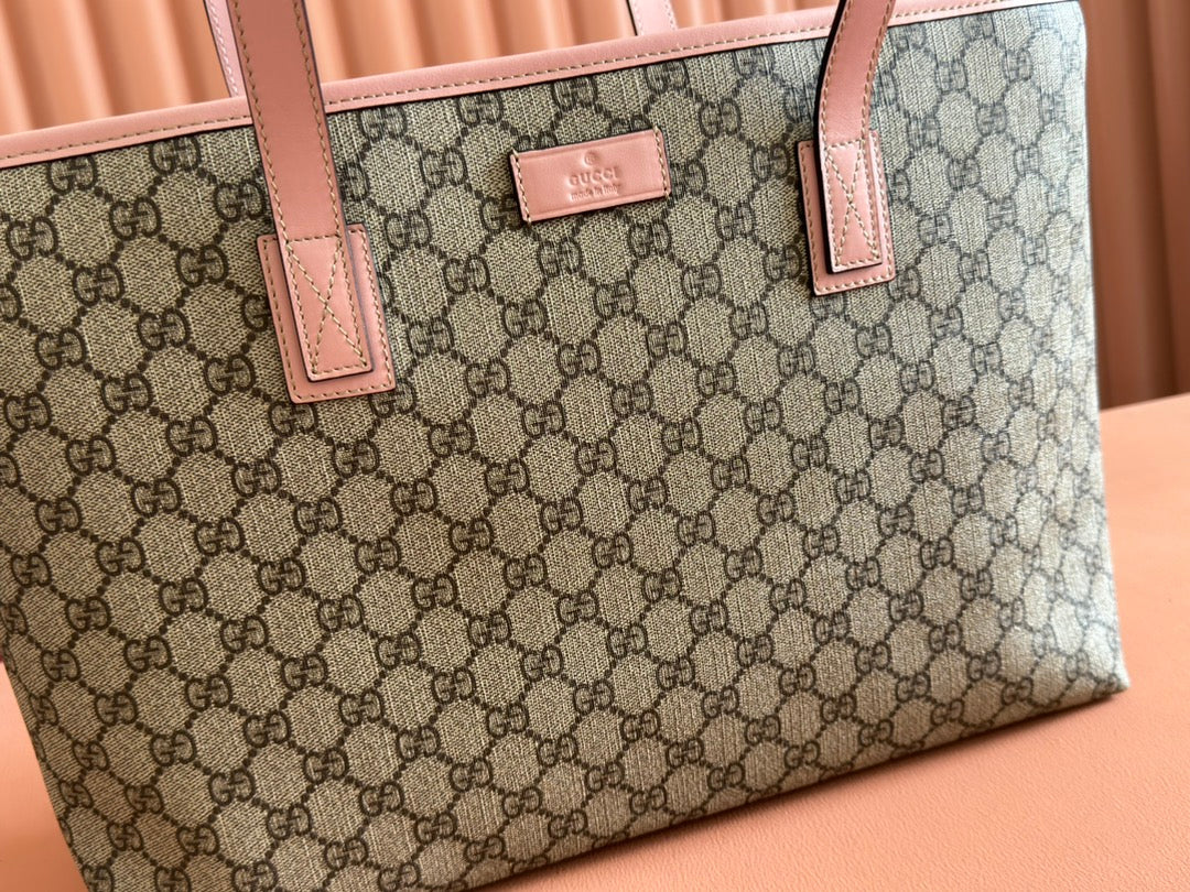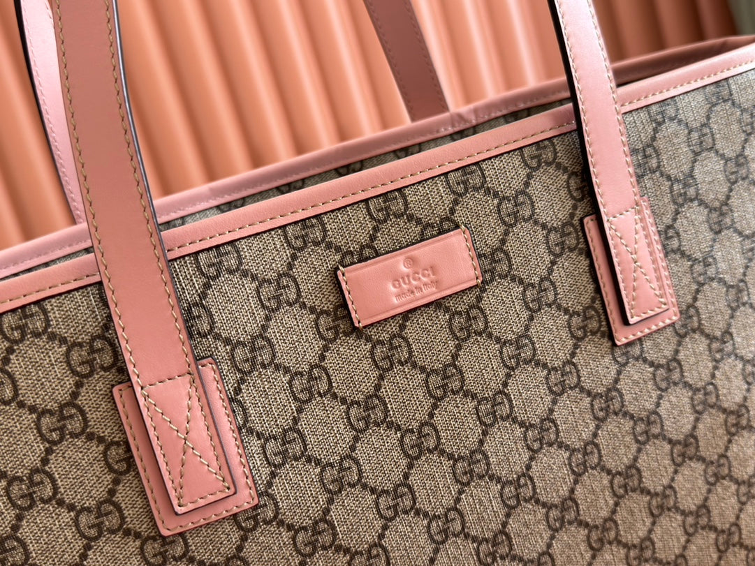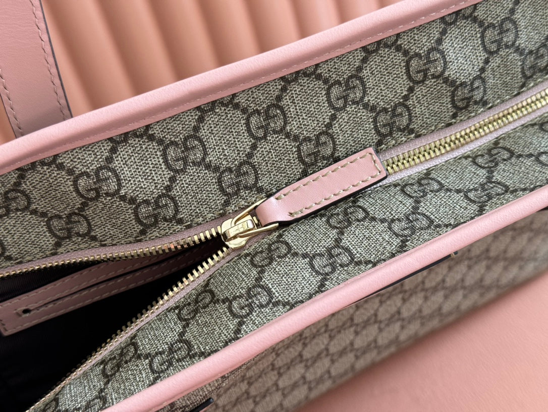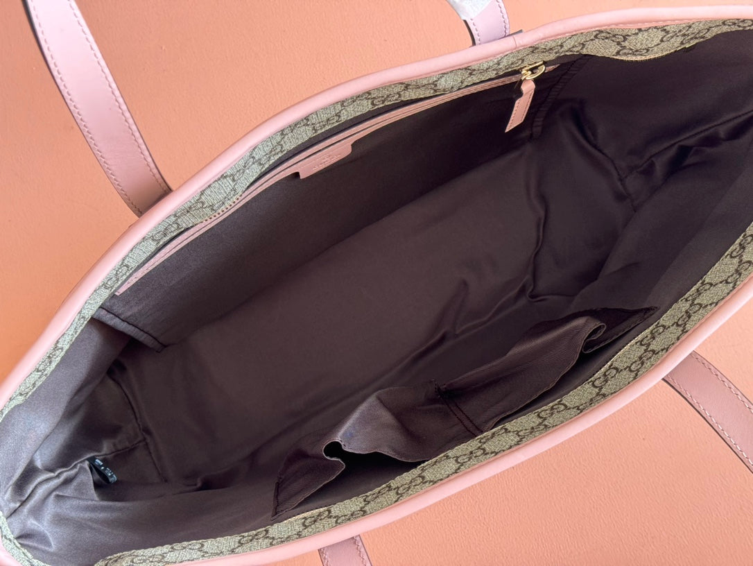 MEDIUM TOTE BAG 38 IN BEIGE AND BROWN GG COATED FABRIC PINK CALFSKIN