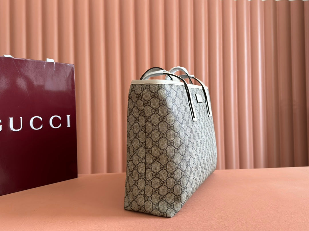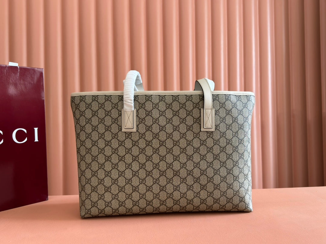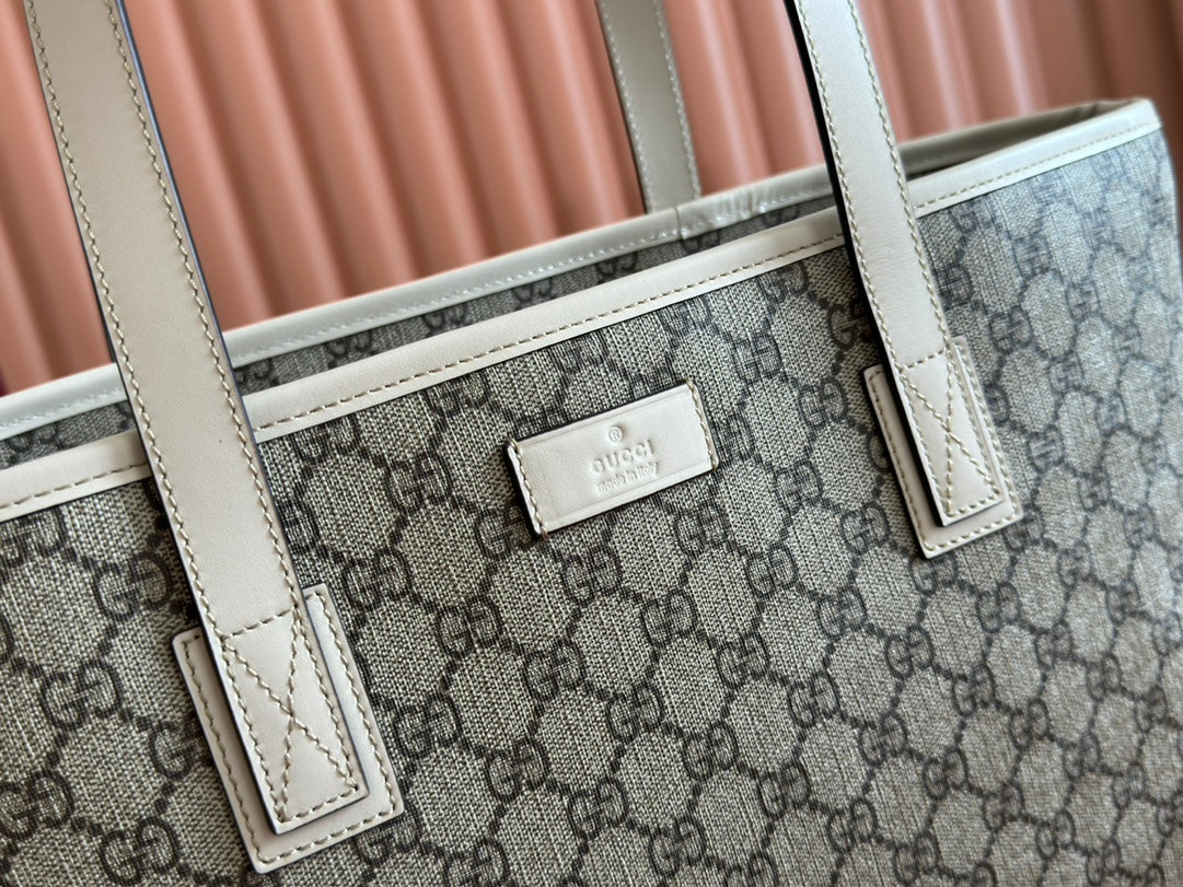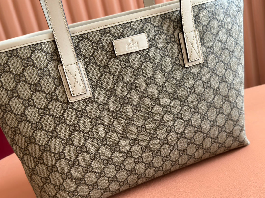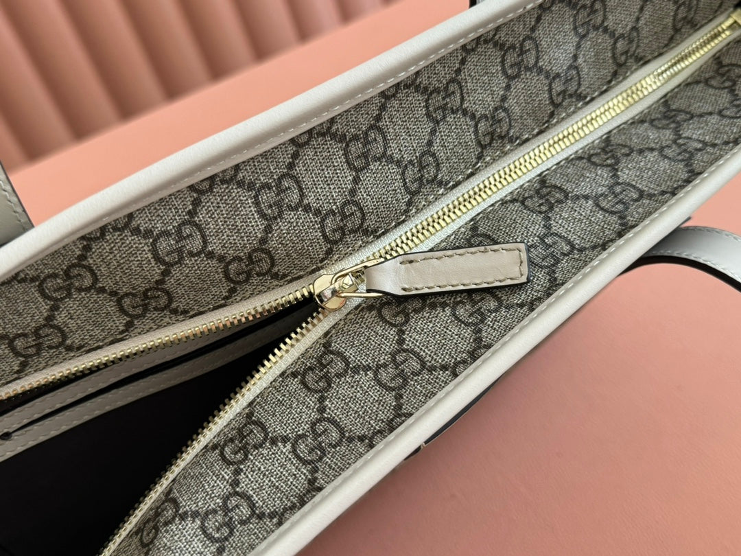 MEDIUM TOTE BAG 38 IN BEIGE AND BROWN GG COATED FABRIC WHITE CALFSKIN