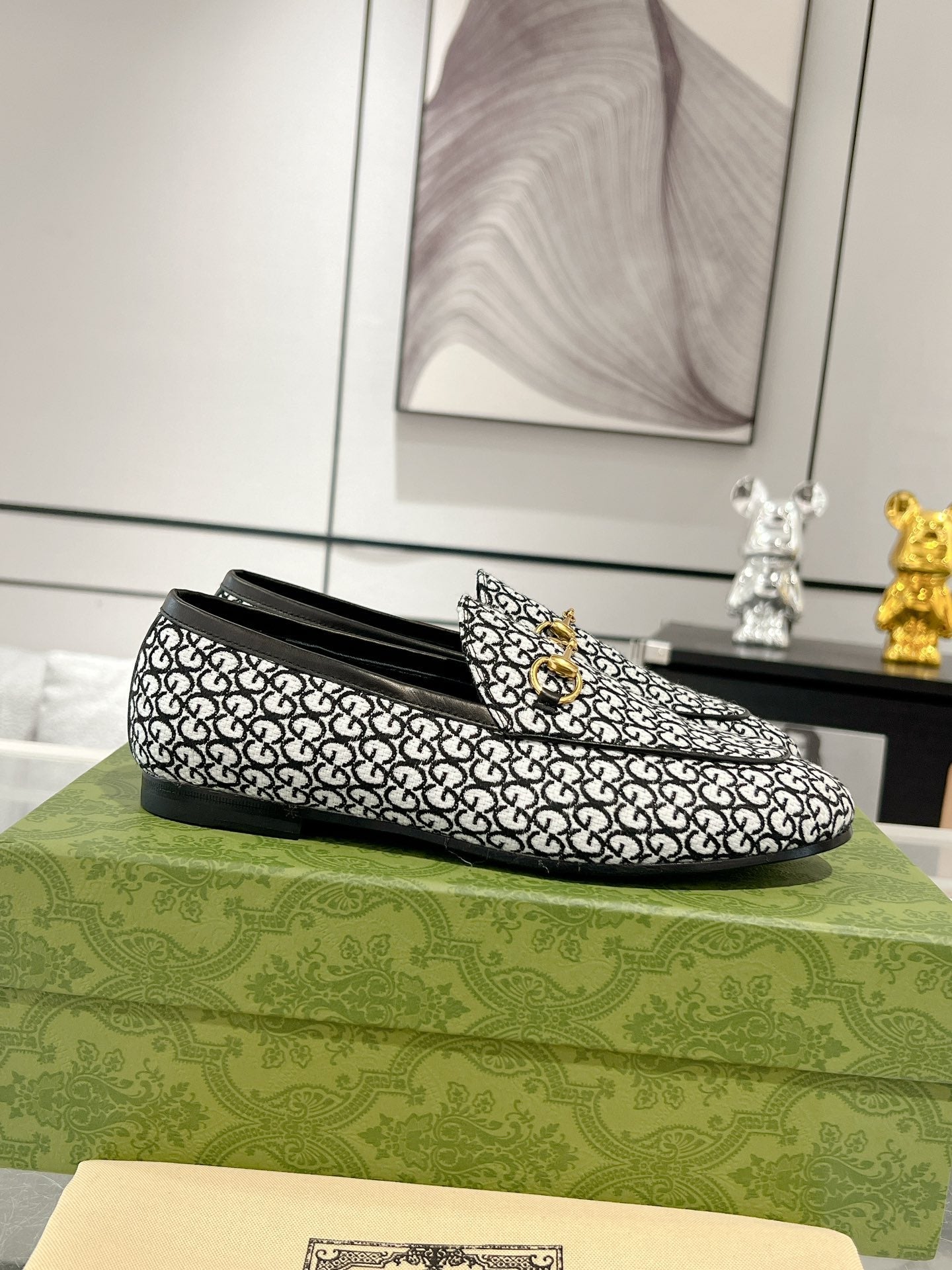 MEN'S LOAFER WITH HORSEBIT IN BLACK MIX WHITE MONOGRAM JACQUARD FABRIC