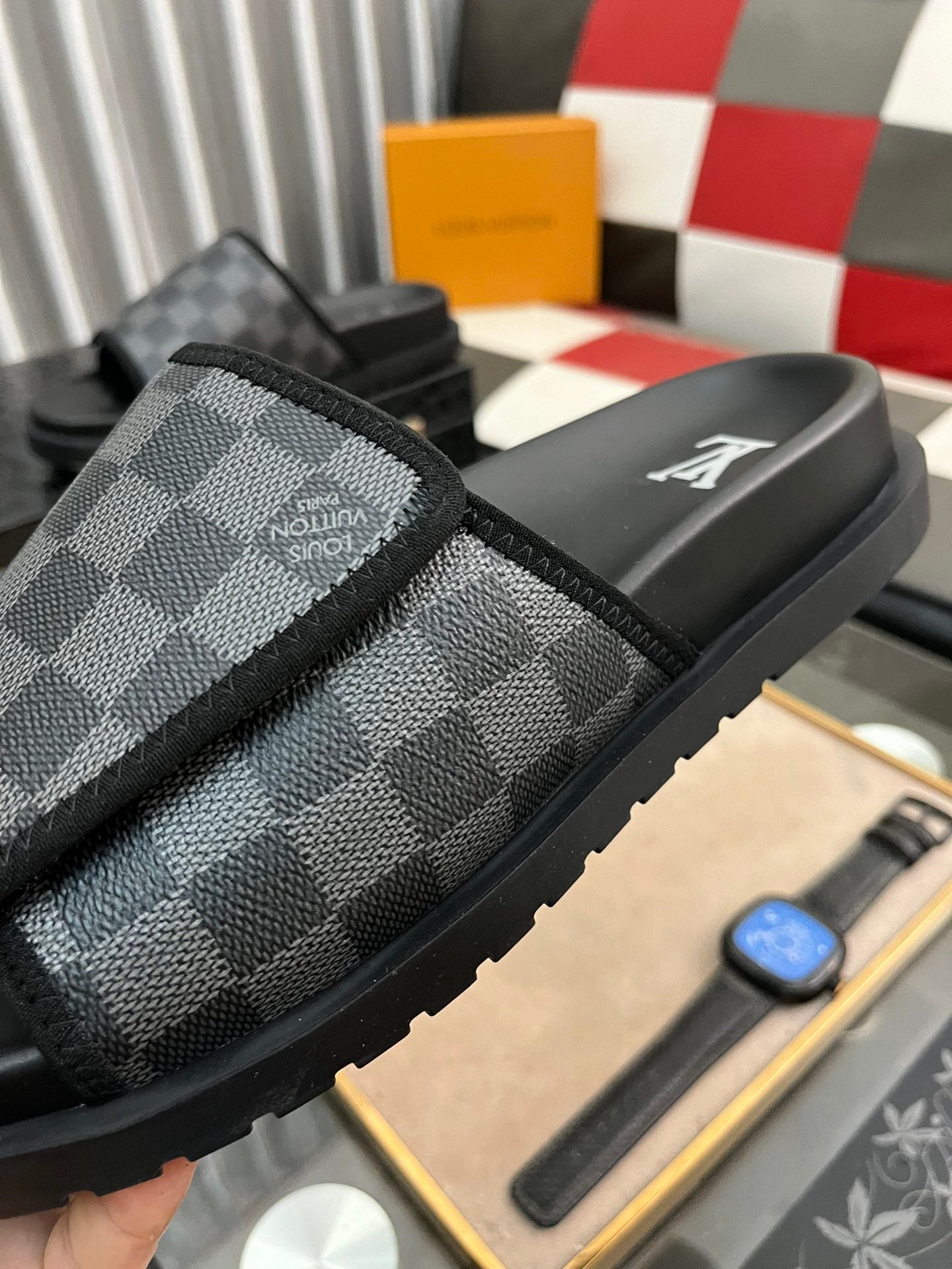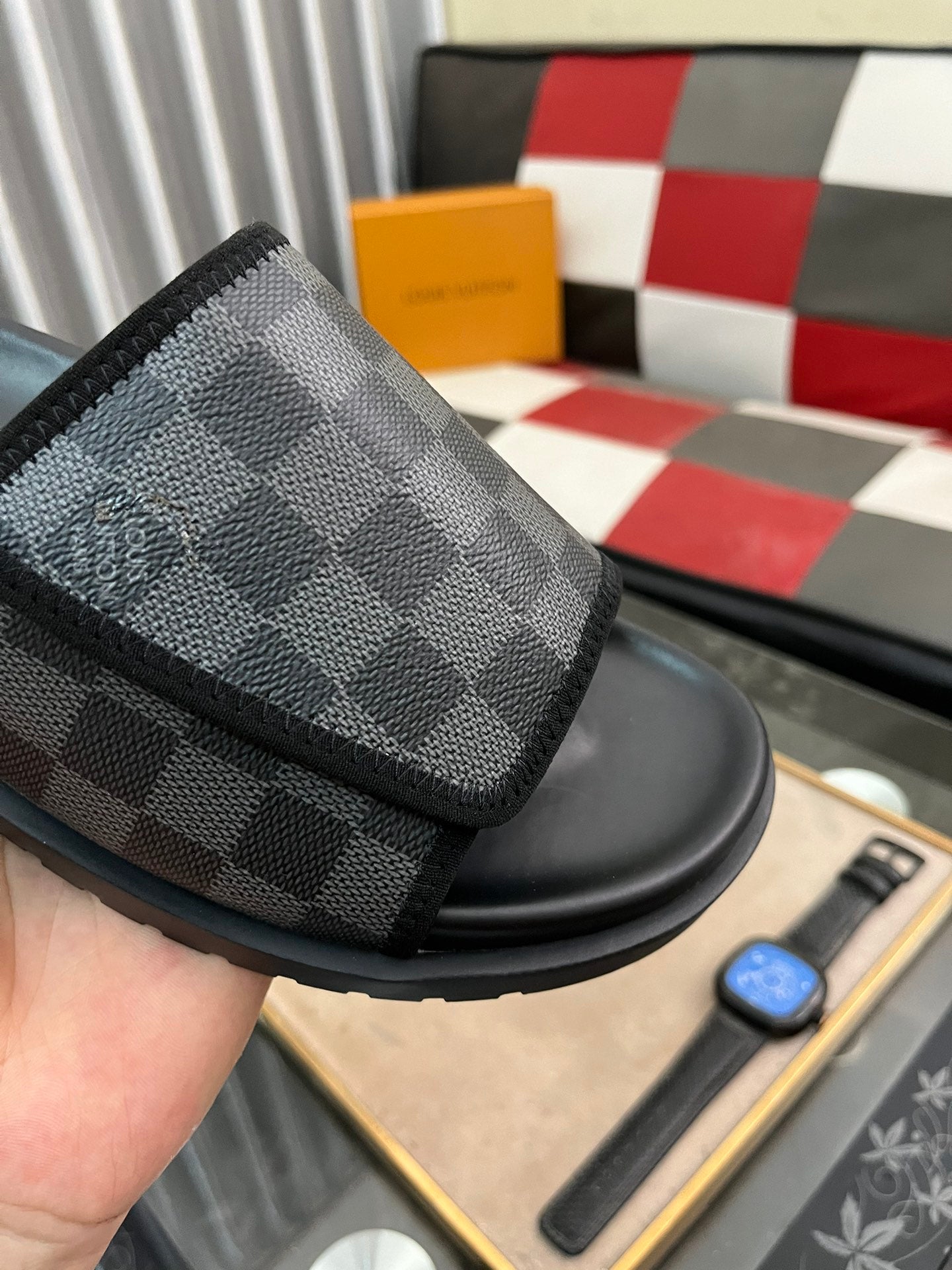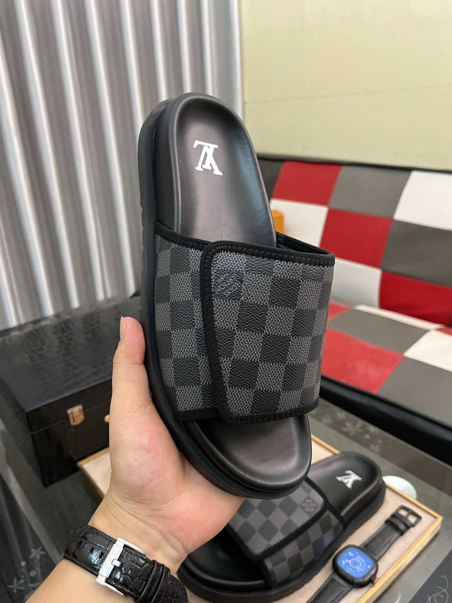 MIAMI MULE IN BLACK DAMIER JACQUARD