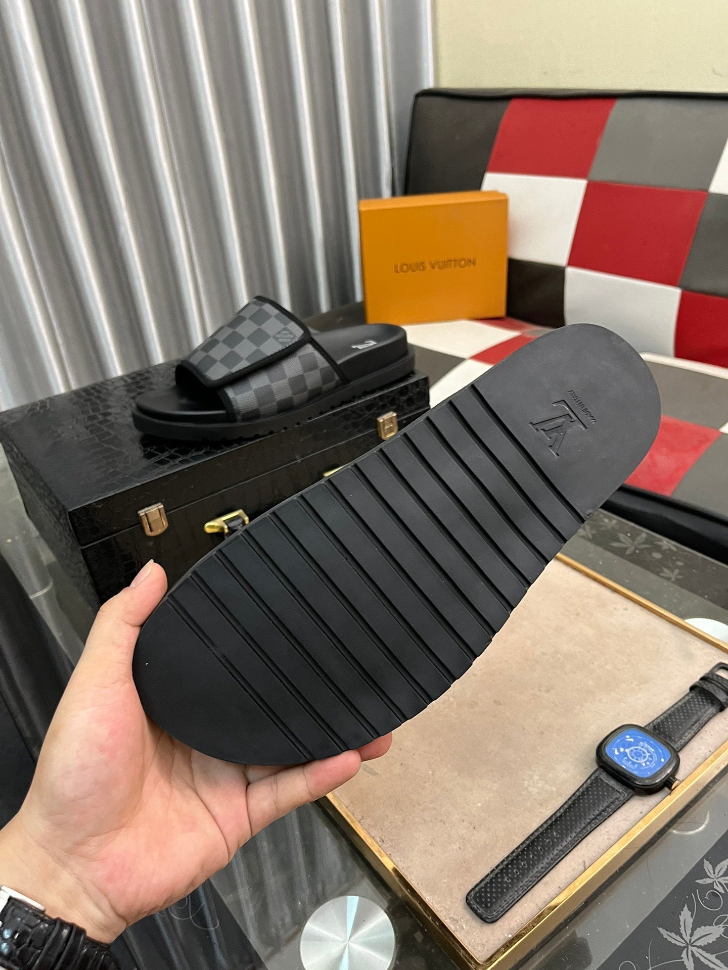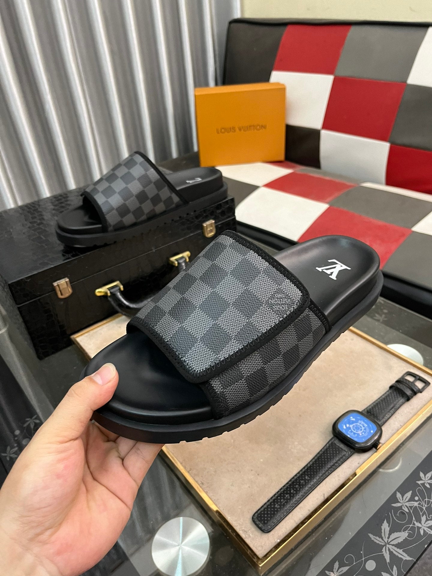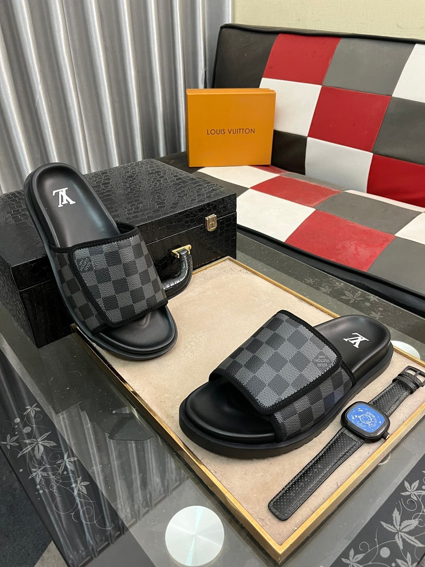 MIAMI MULE IN BLACK DAMIER JACQUARD