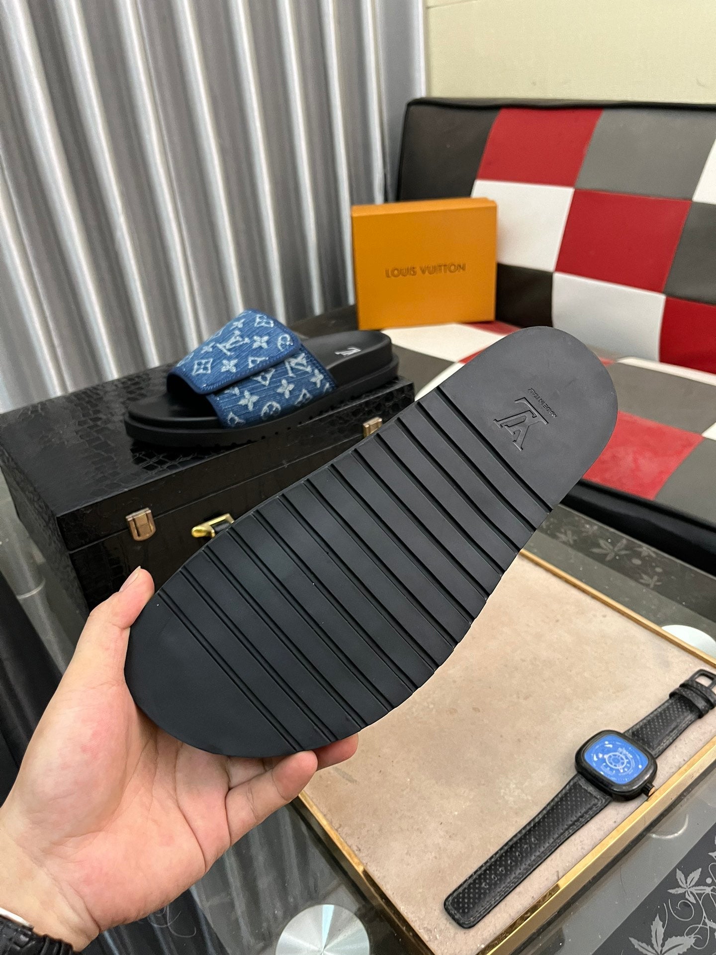 MIAMI MULE IN DENIM BLUE MONOGRAM JACQUARD