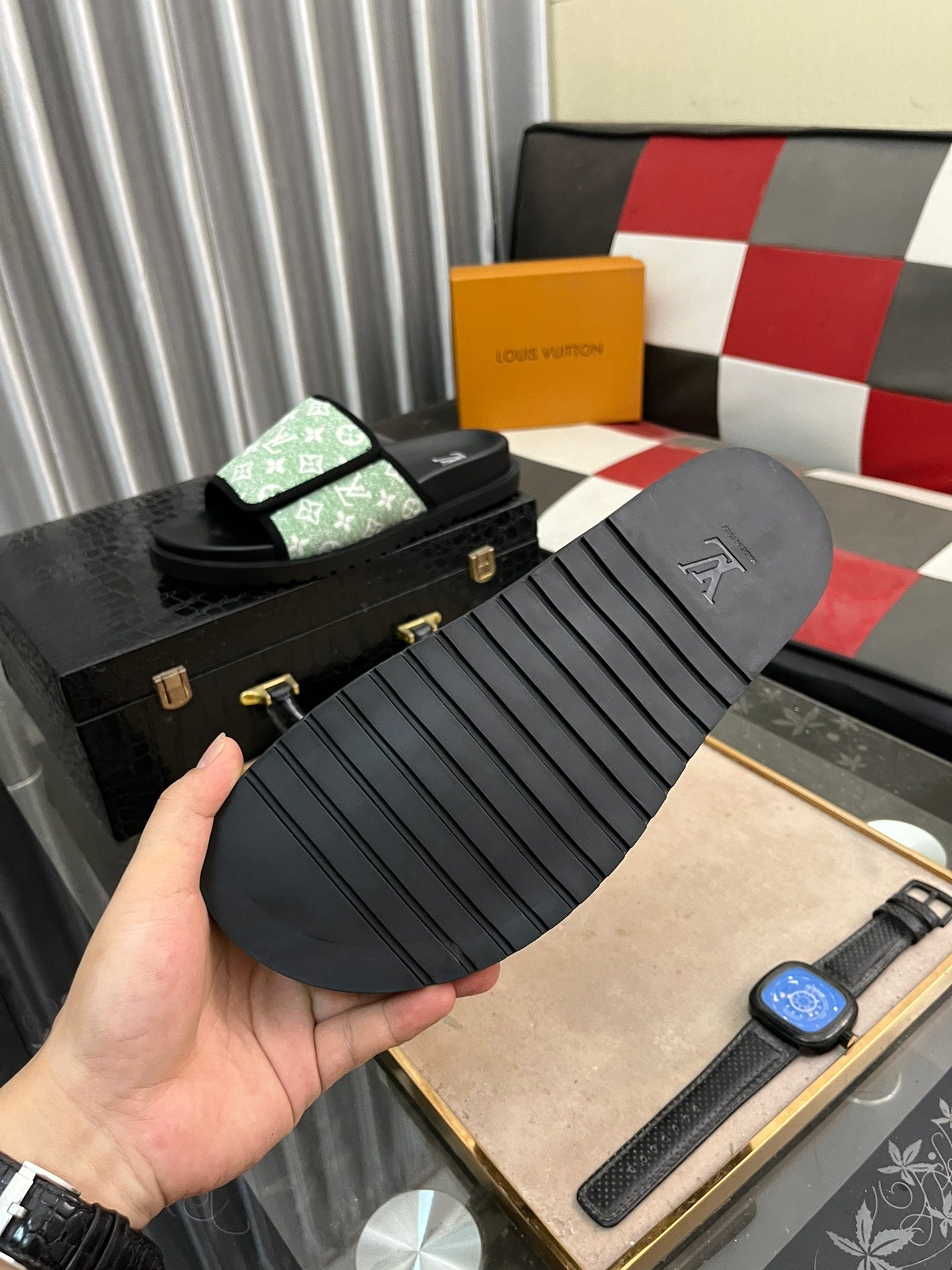 MIAMI MULE IN LIGHT GREEN MONOGRAM JACQUARD