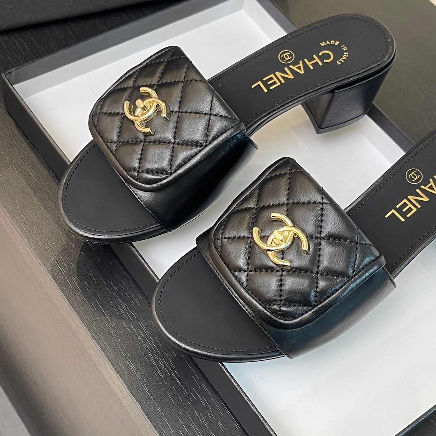 MID-HEEL 5 CM MULE IN BLACK LAMBSKIN