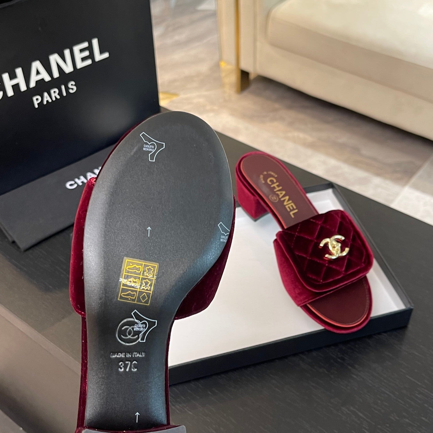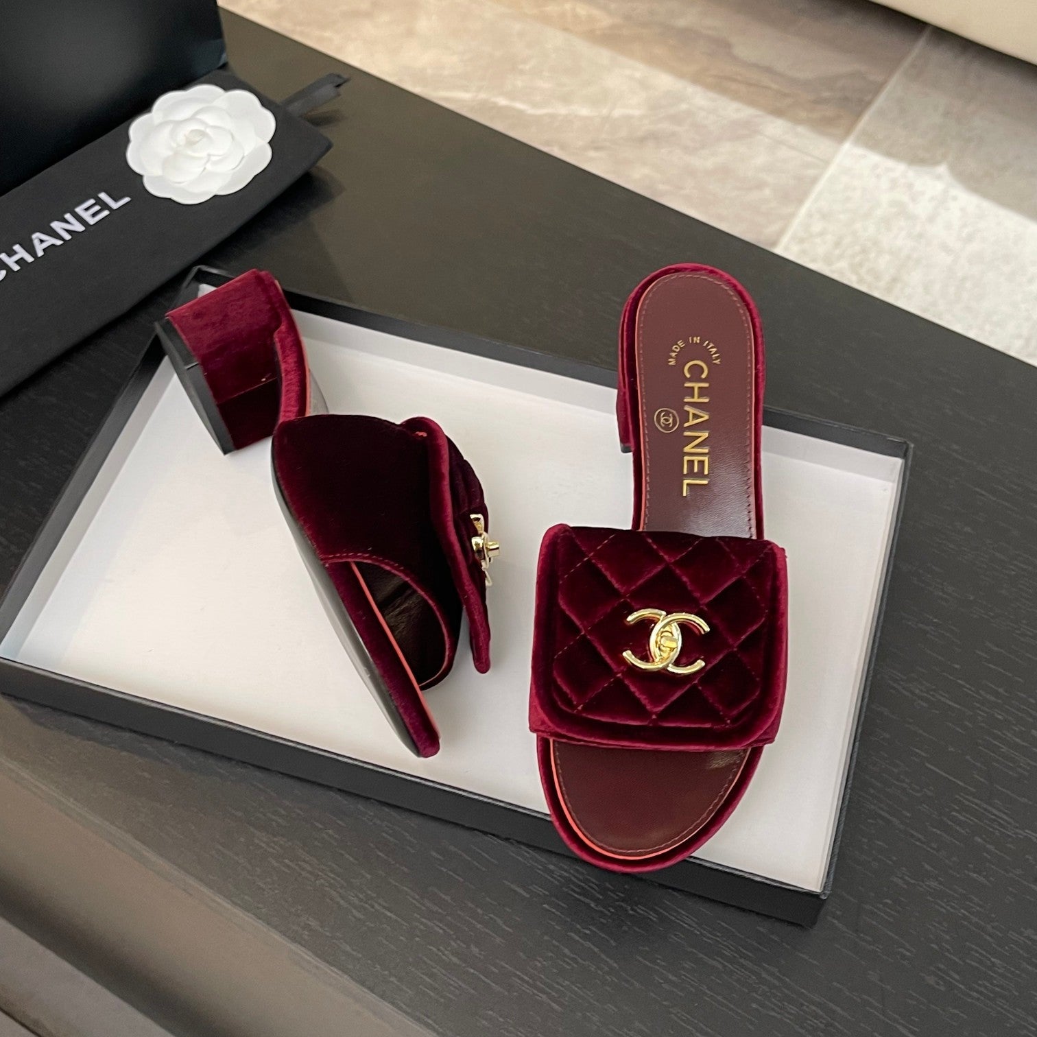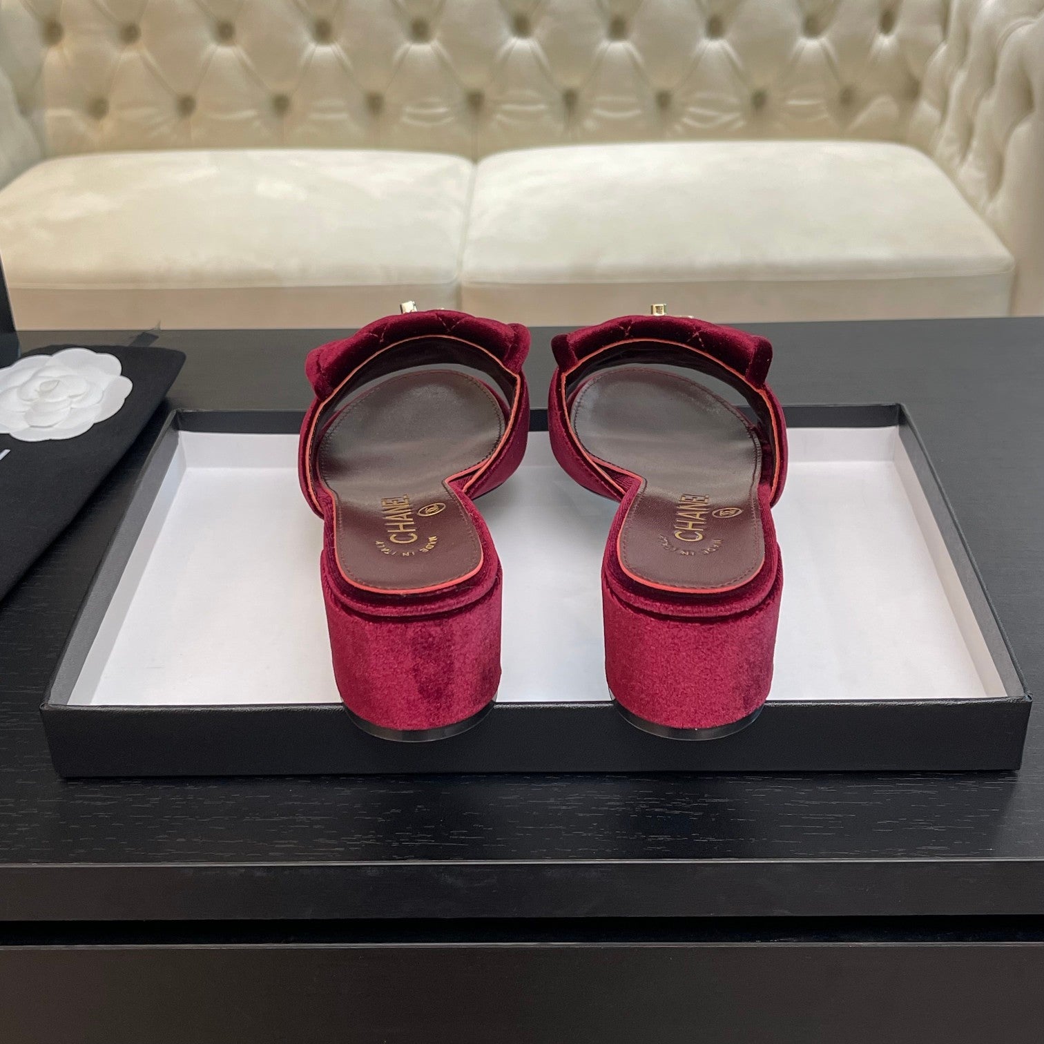 MID-HEEL 5 CM MULE IN BURGUNDY RED VELVET