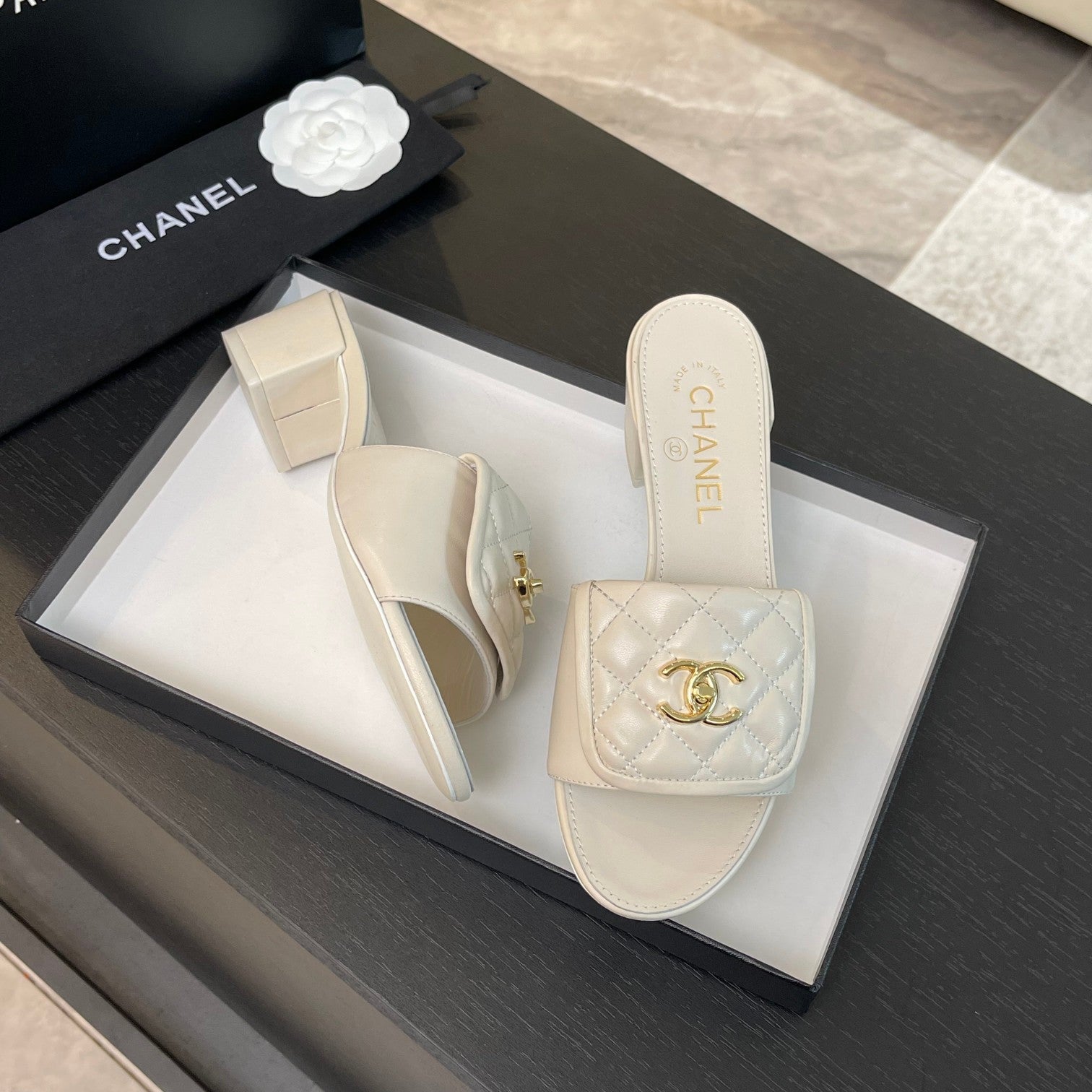 MID-HEEL 5 CM MULE IN WHITE LAMBSKIN