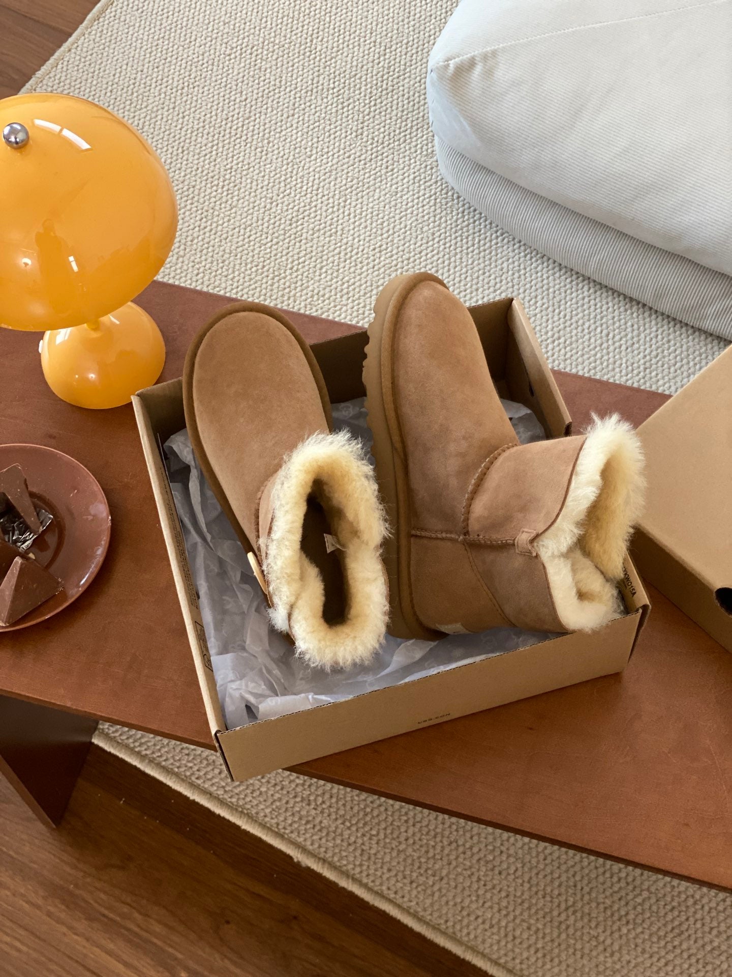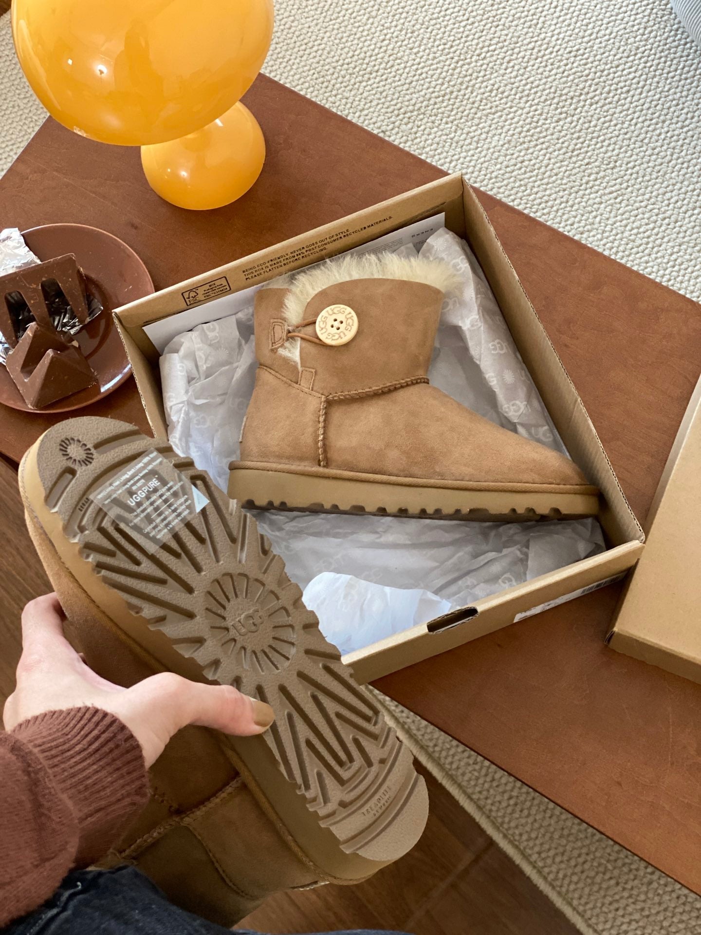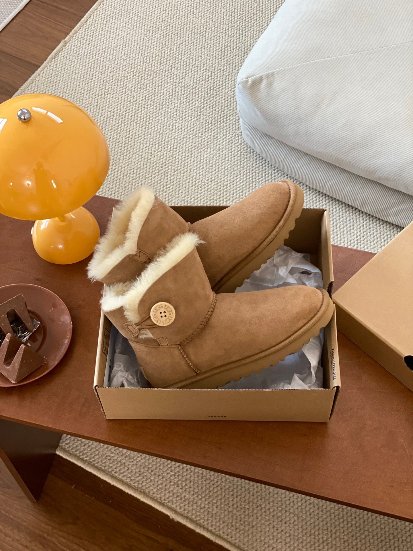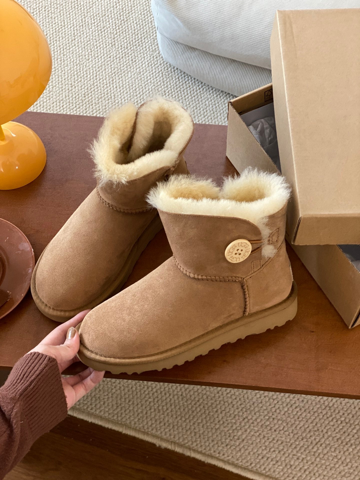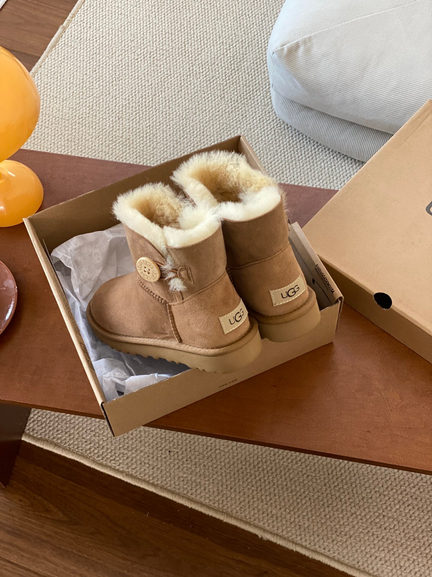 MINI BAILEY BUTTON II BOOT IN CIDER BROWN SUEDE AND SILK COTTON PADDING