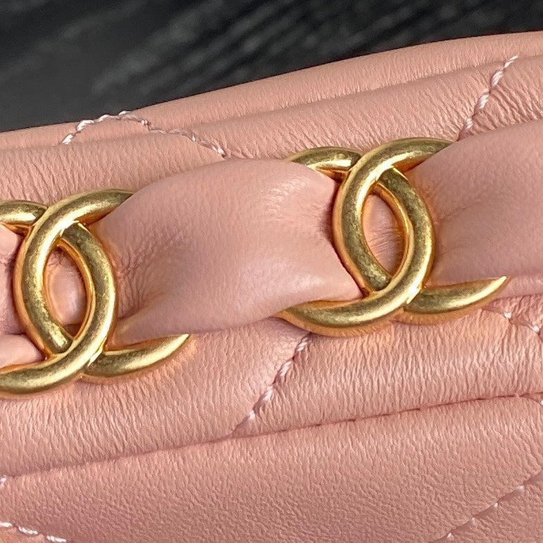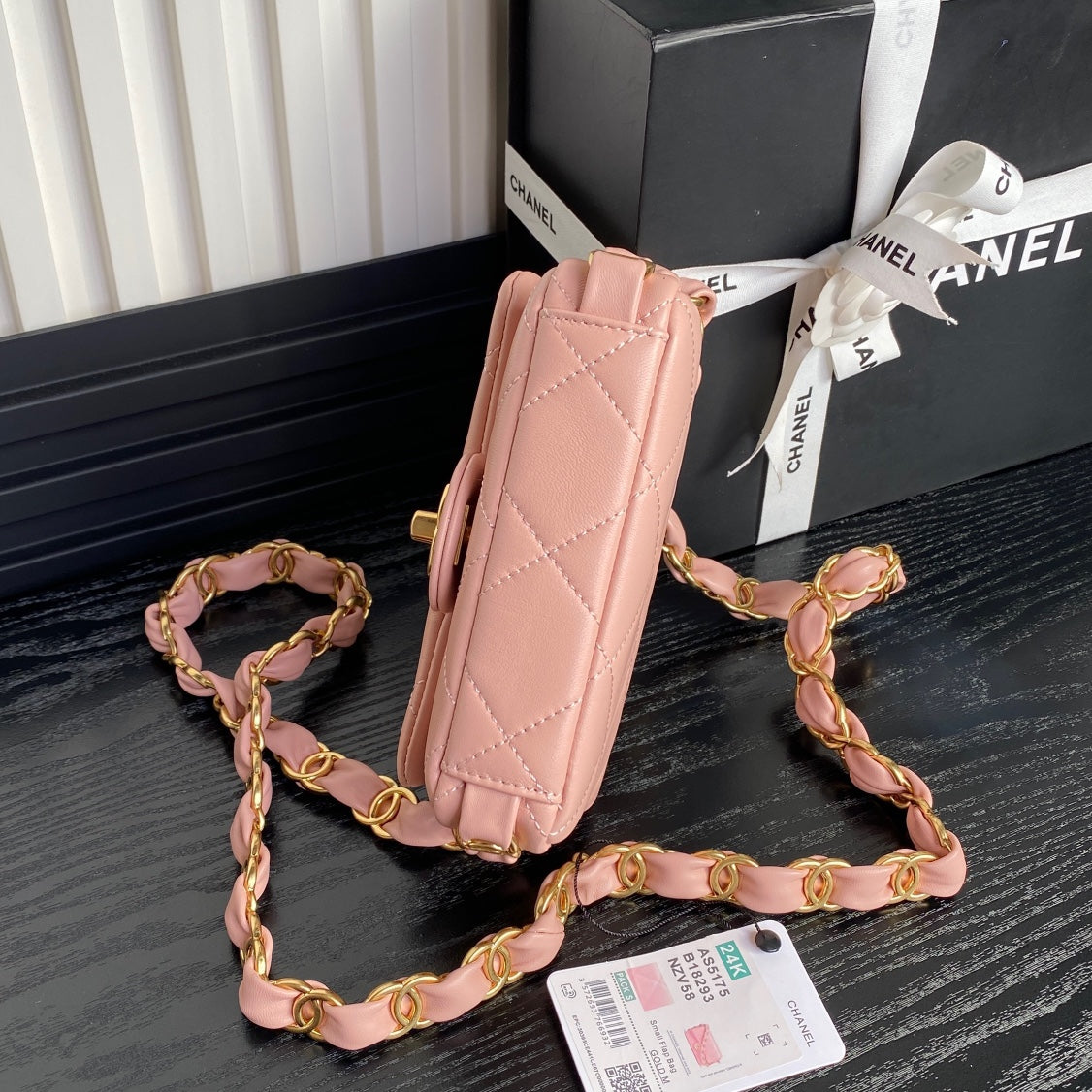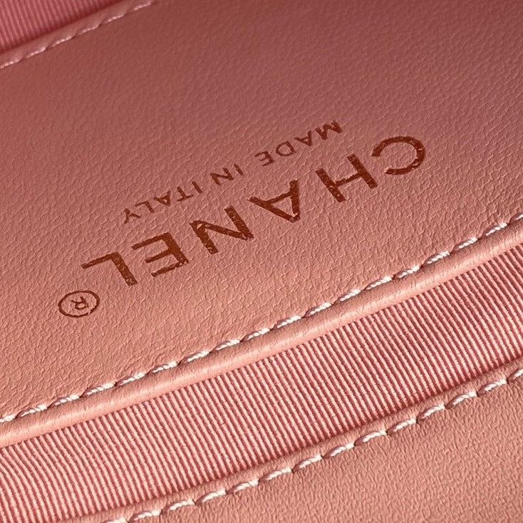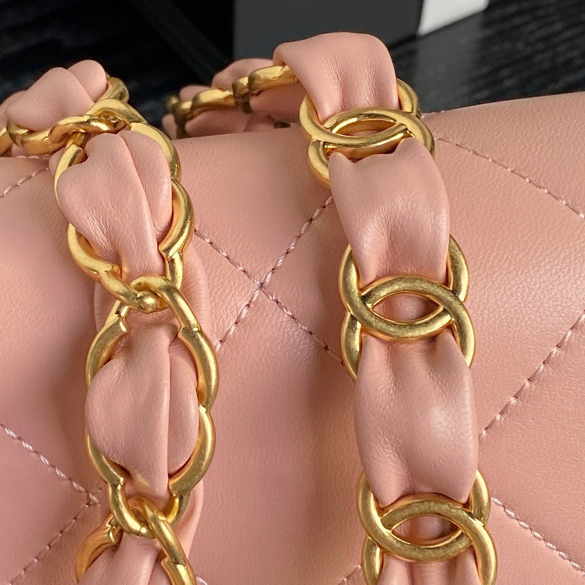 MINI FLAP BAG 16 IN MELON PINK CALFSKIN GOLD DOUBLE C THICK CHAIN